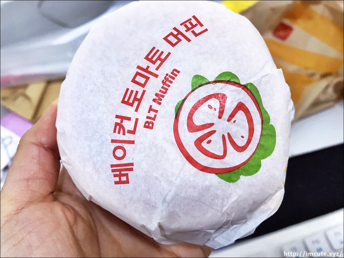 맥도날드에서 베이컨 토마토 머핀 세트 먹었어요.