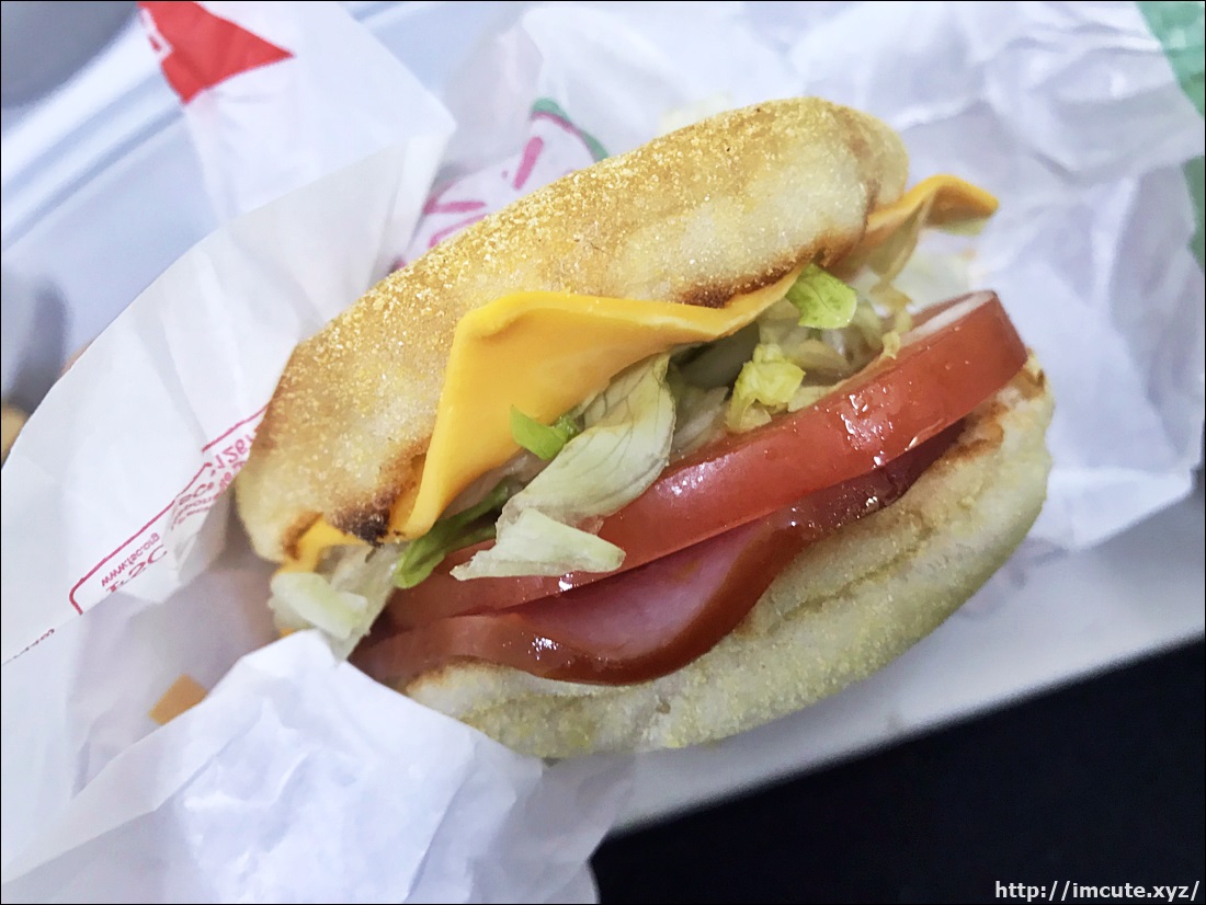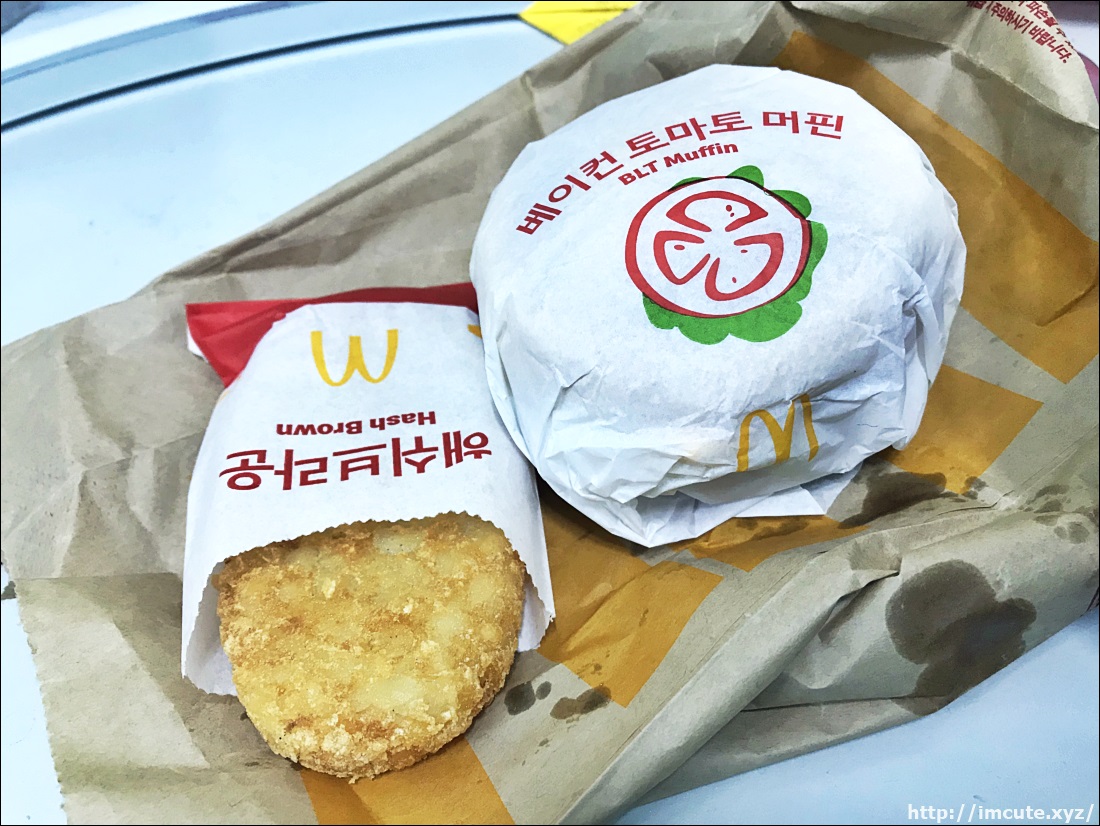 맥도날드에서 베이컨 토마토 머핀 세트 먹었어요.