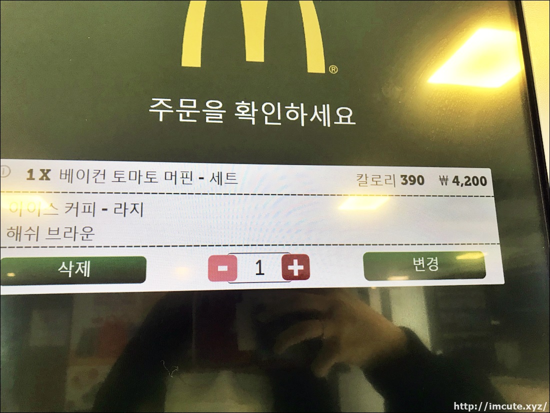 베이컨 토마토 디럭스는 고칼로리니까 아침엔 저칼로리 맥모닝으로.