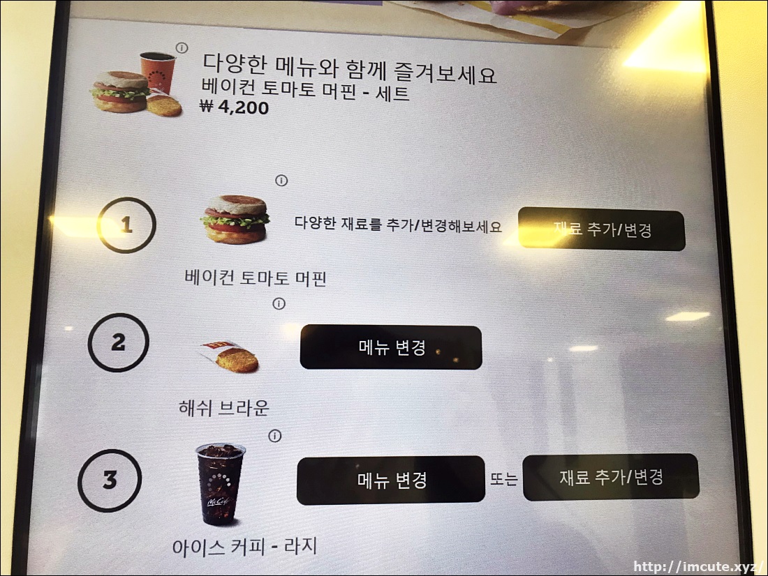 베이컨 토마토 머핀 세트는 4200원이었어요.