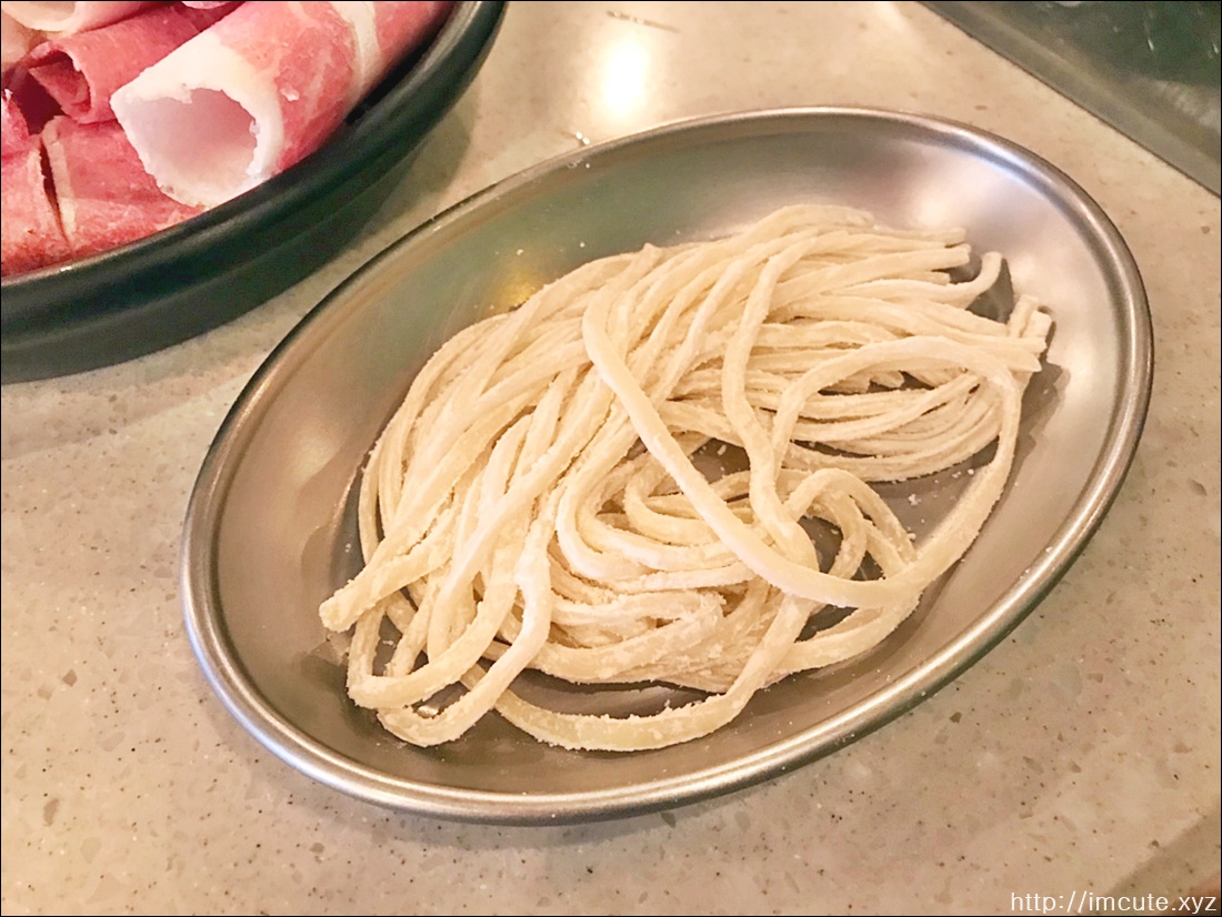 안에는 버섯이랑, 고사리까지 있을건 다 들어있고 면도 뭔가 수타면 느낌.ㅋㅋㅋ밀가루가 뿌려져 있습니다.