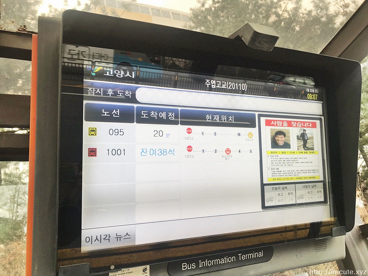 근데 저는 그냥 버스 정류장에 있는 스크린을 보는 편입니다.