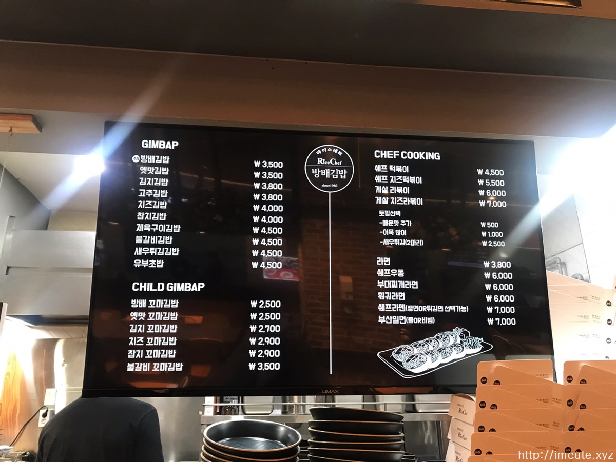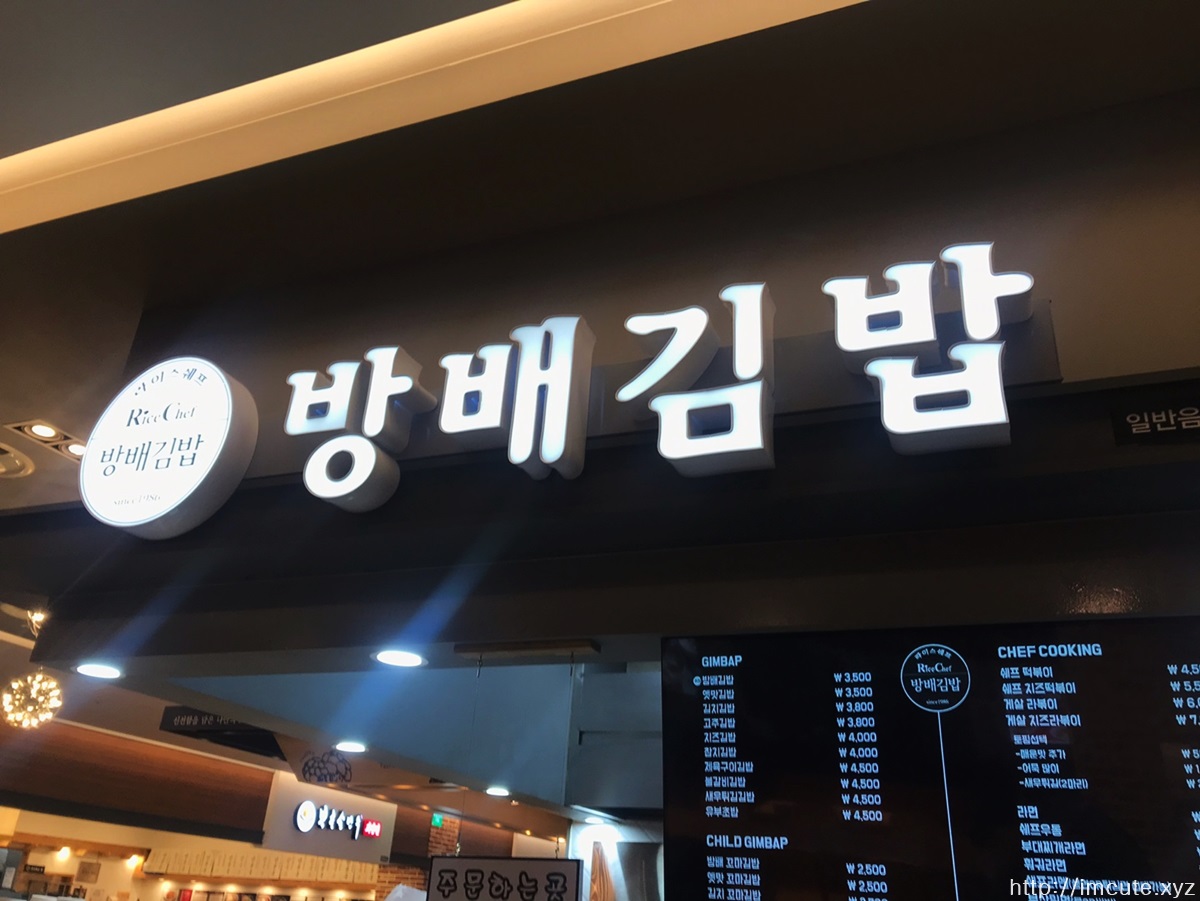 일산 그랜드백화점 식당가에 위치한 방배김밥 메뉴 가격 정보입니다