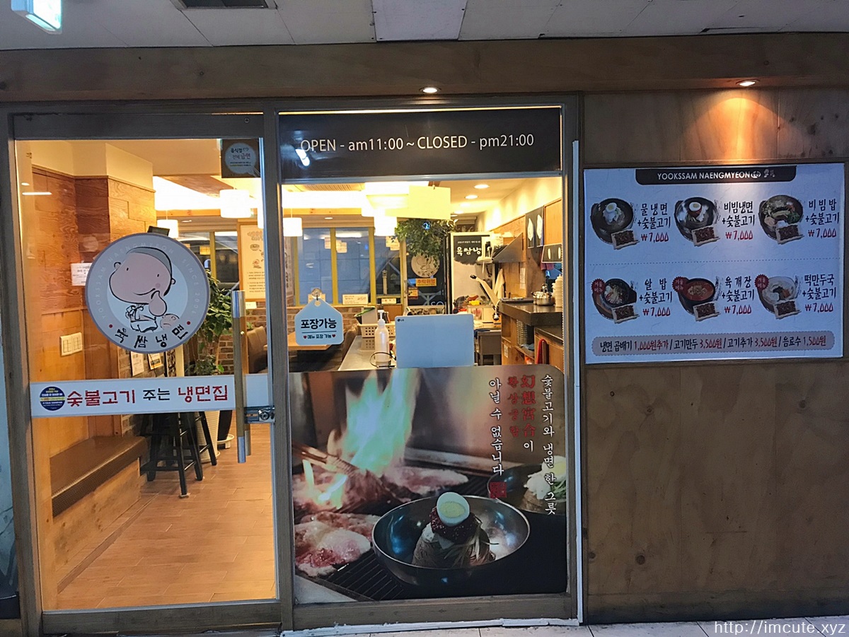 포장도 가능하며 숯불고기 주는 냉면집이라고 써있습니다.