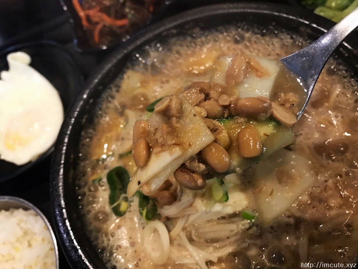 푸릇푸릇한 채소까지 있어서 마음이 싱그러워지는 느낌이네요. 저는 나물을 좋아하는데 비단 청국장 뿐만이 아니라, 여기서 잡채랑 나물까지 같이 먹을수 있어서 행복했네요. 주방 이모님의 마음이 느껴지는듯 해요.
