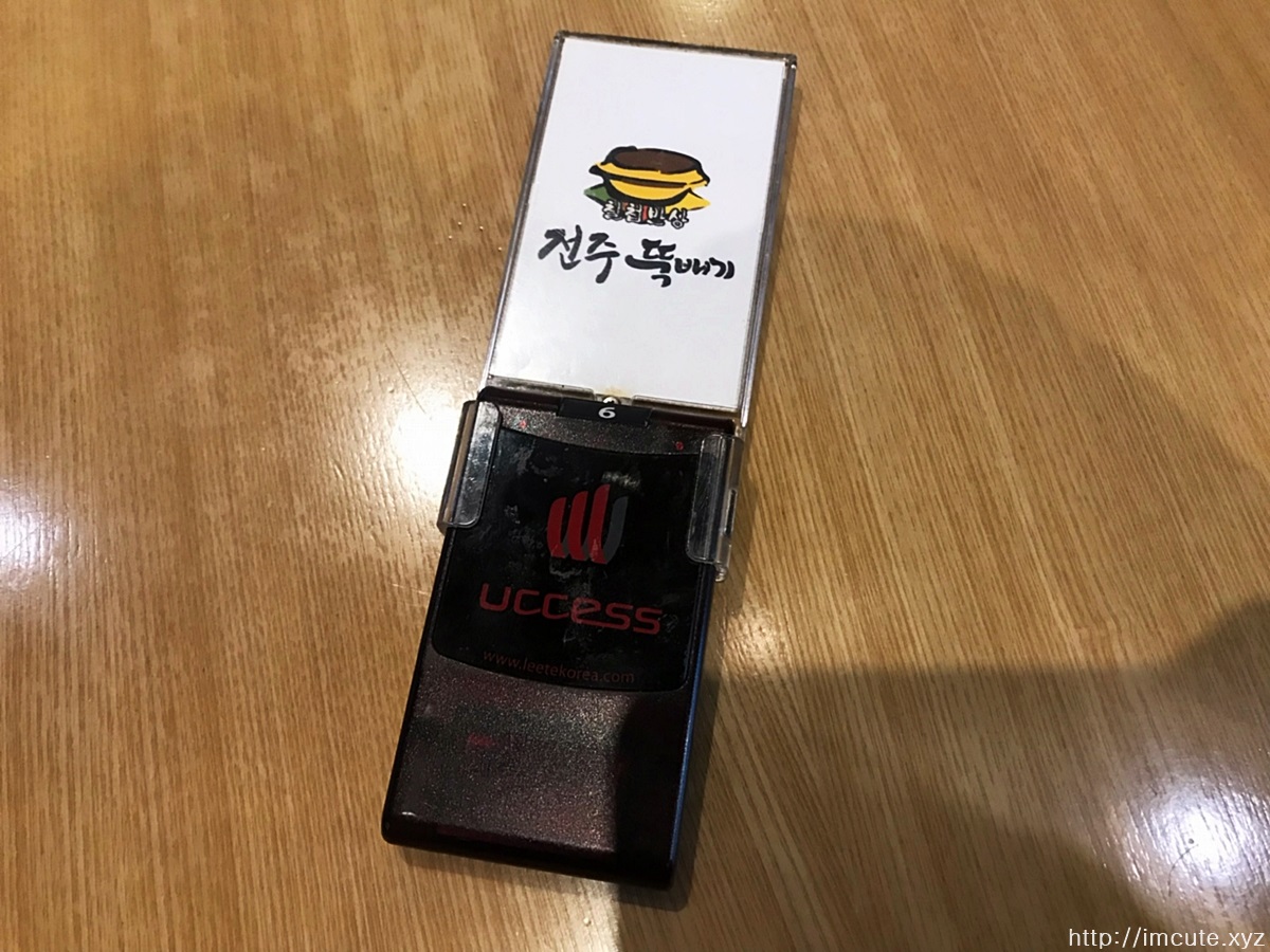 이렇게 진동벨을 주시는데요, 울리면 가서 셀프로 찾아오면 되는 시스템이에요.