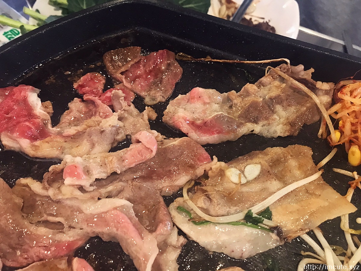 미나리랑 팽이버섯, 숙주를 한데 구워주었는데요 고기랑 같이 먹으니까 향이 더 좋아요. 아마, 고기의 기름이 향을 더 배로 업그레이드 시켜주는 역할을 한지도요.