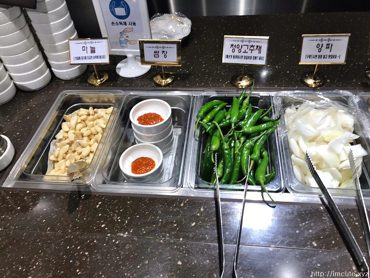 이뿐만 아니라 장국및 마늘밥도 셀프 바에서 이용할수 있었습니다. 밥을 따로 시키지 않아도 되다니!