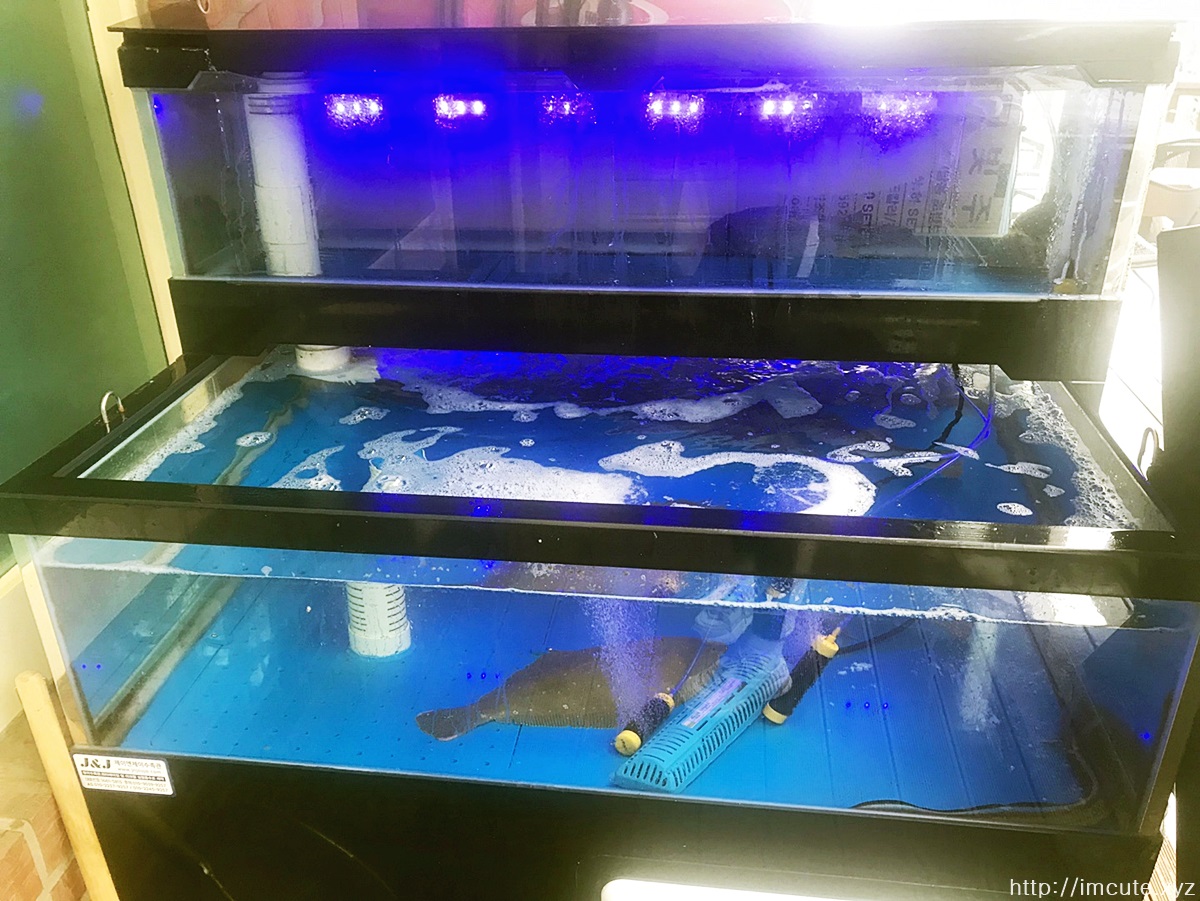 물고기들이 노닐고 있는 수족관 한번 찍어보았어요...어떤 어종은 직접 잡아서 해주시나봐요