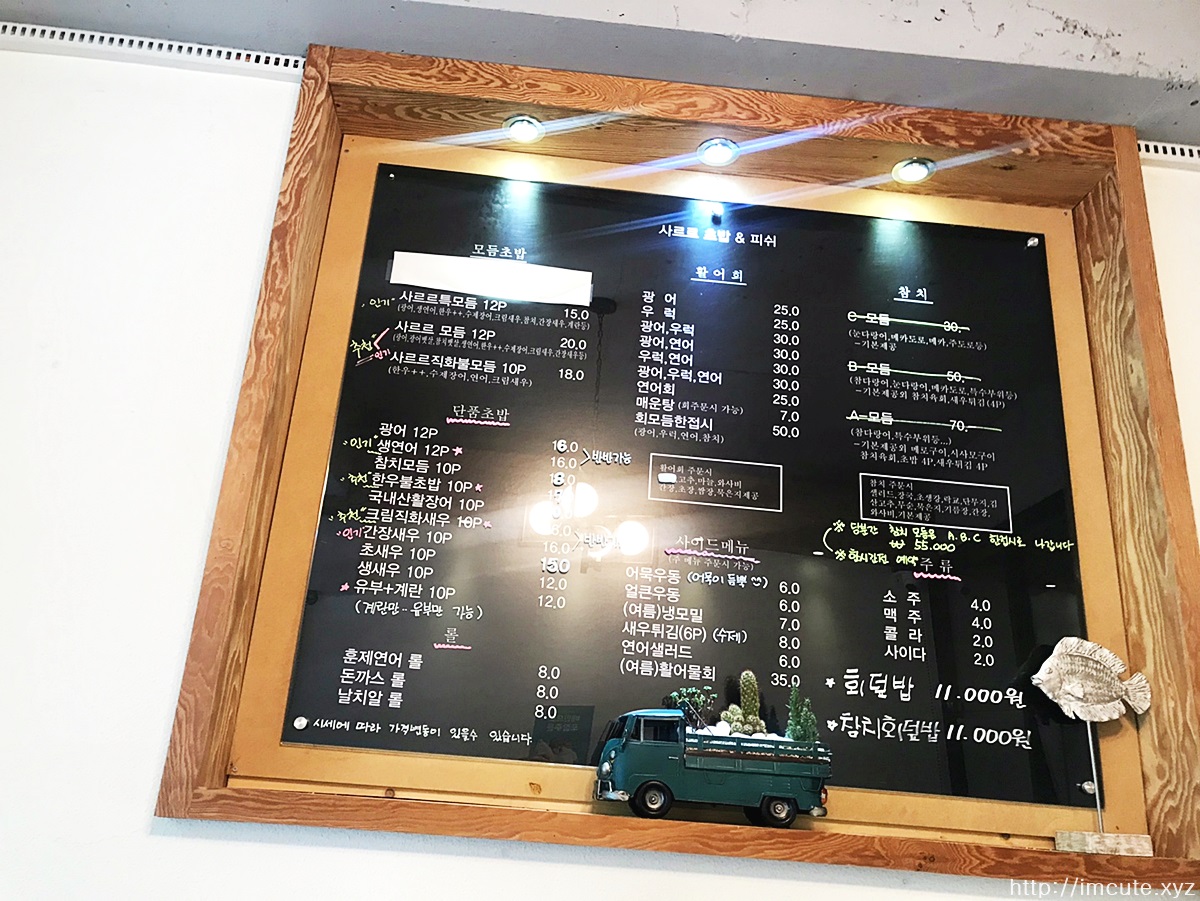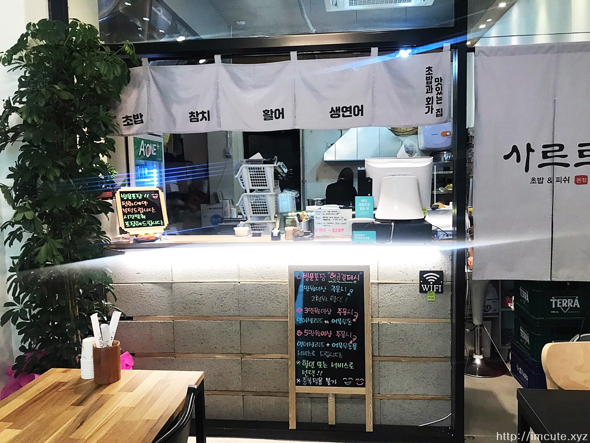일산 사르르초밥 내부엔 앉아서 먹을수 있는 자리가 마련되어 있습니다.
