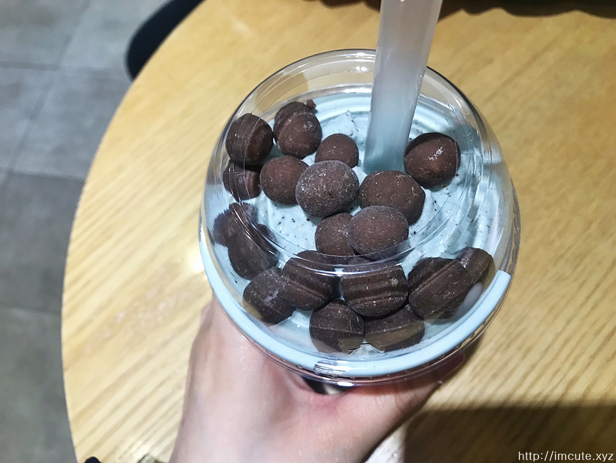위에 동그랗게 초코볼이 얹어져 있어서 배까지 부릅니다. 그러니 500칼로리가 넘는거겠죠?