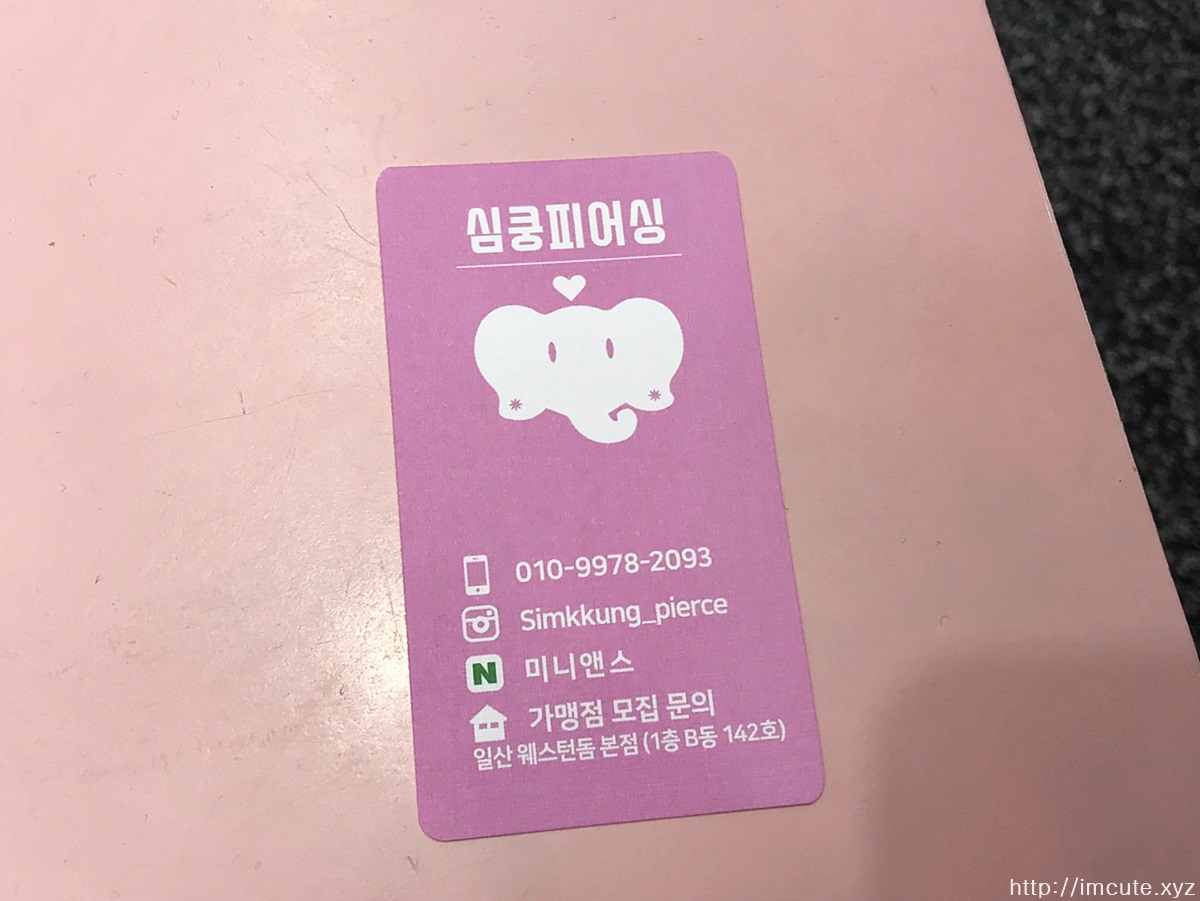 여기 일산 피어싱 전문샵 심쿵 명함이고요! 다음에 또 이것저것 구경하러 올려고 챙겨왔어요