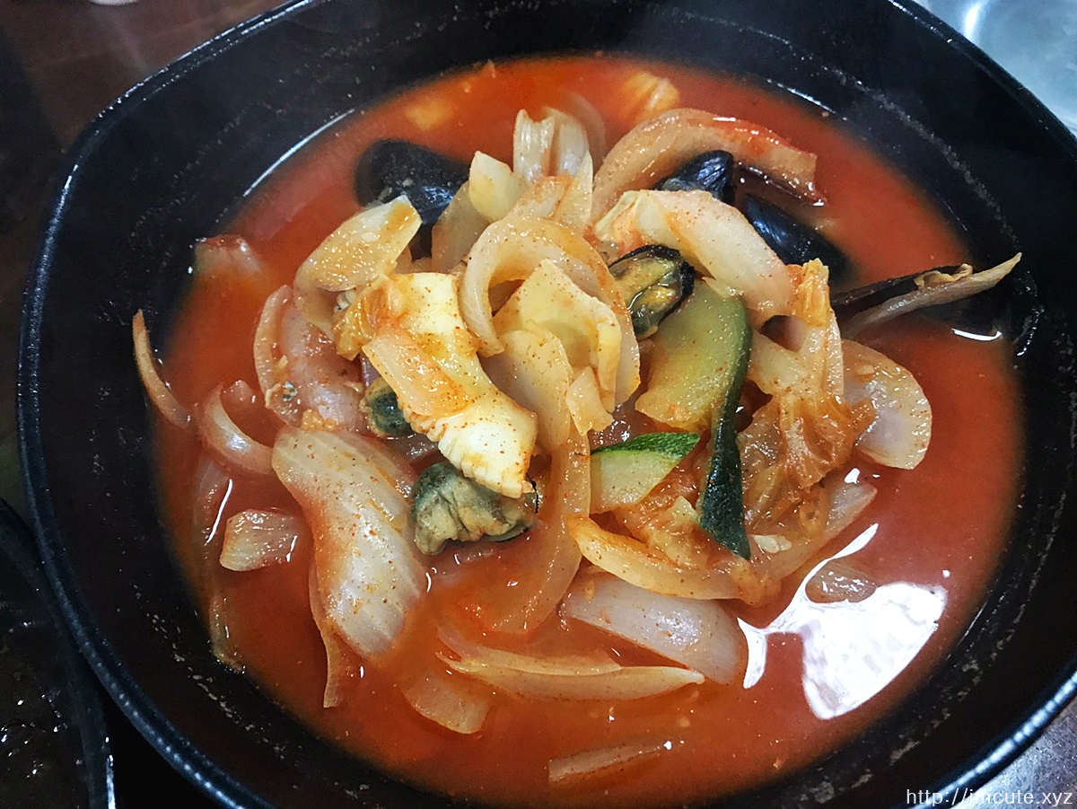 홍합, 위소라, 대왕 오징어 등 여러가지 재료가 엿보여요. 잘 안보이지만 꼴뚜기 같은것도 몇마리 들어있었어요.