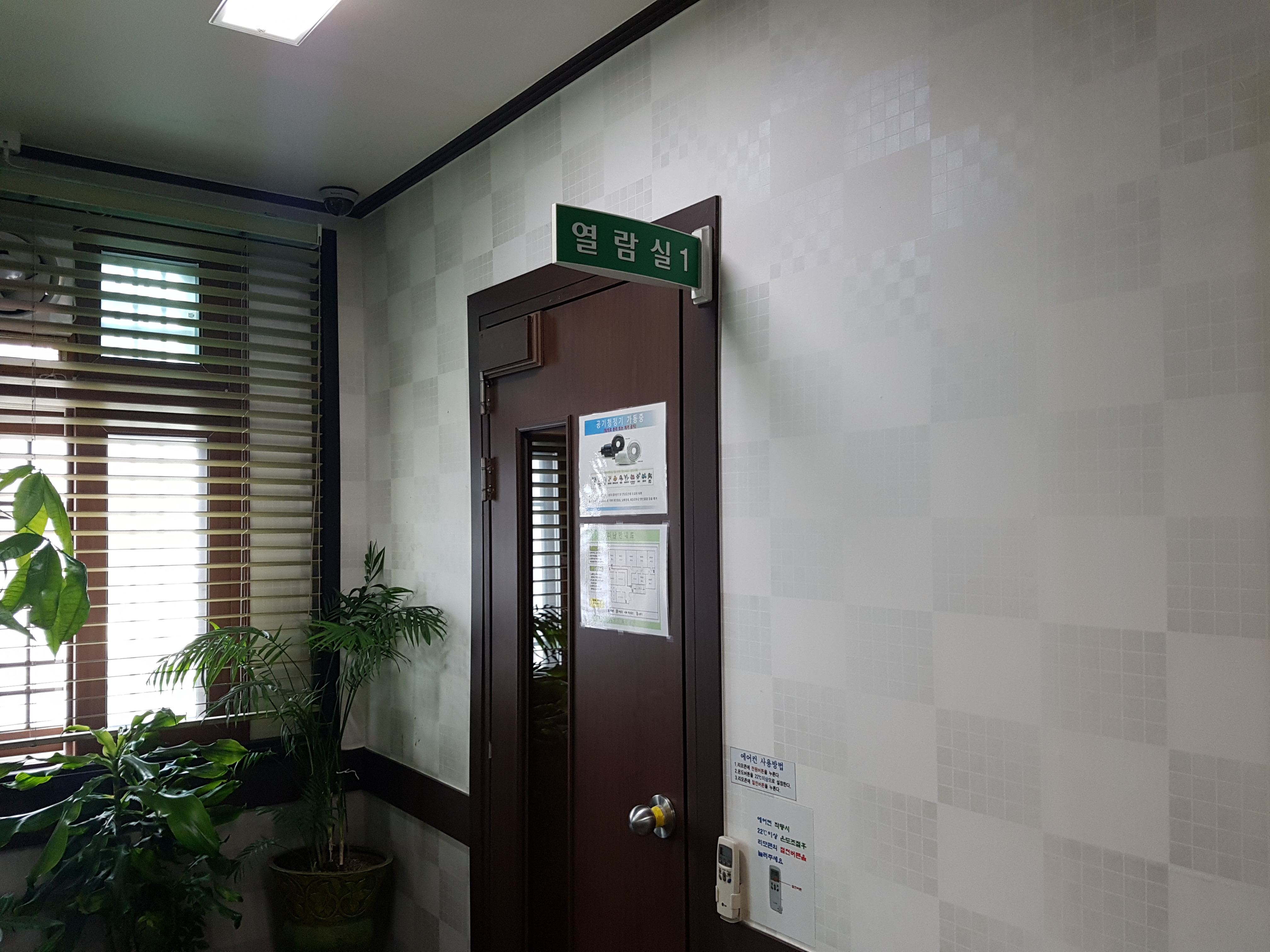 독서실 출입구 쪽에는 통화를 할 수 있는 휴게시설이 마련되어 있었어요.