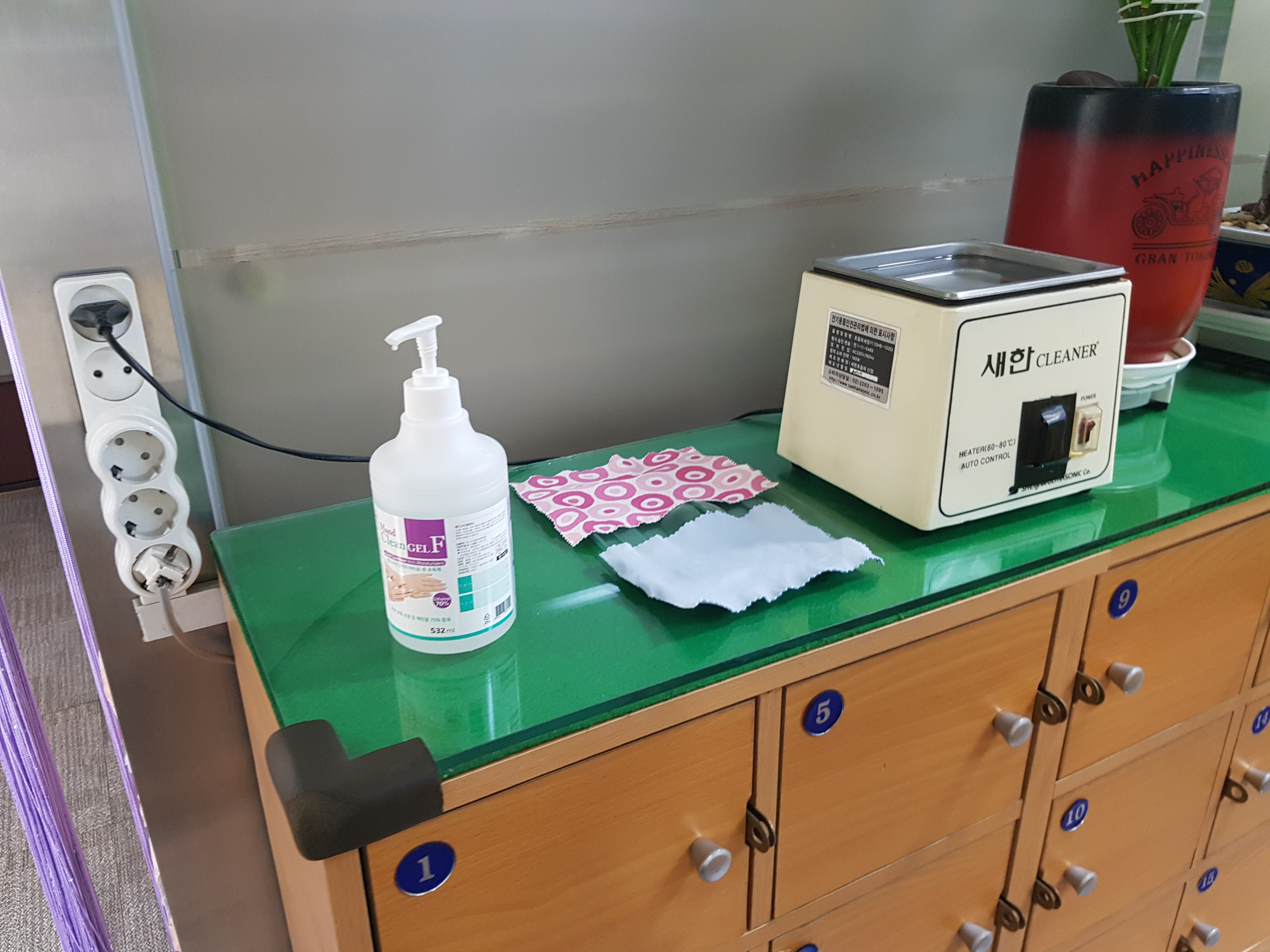 그리고 손 소독제가 있어서 코로나19 를 예방했어요
