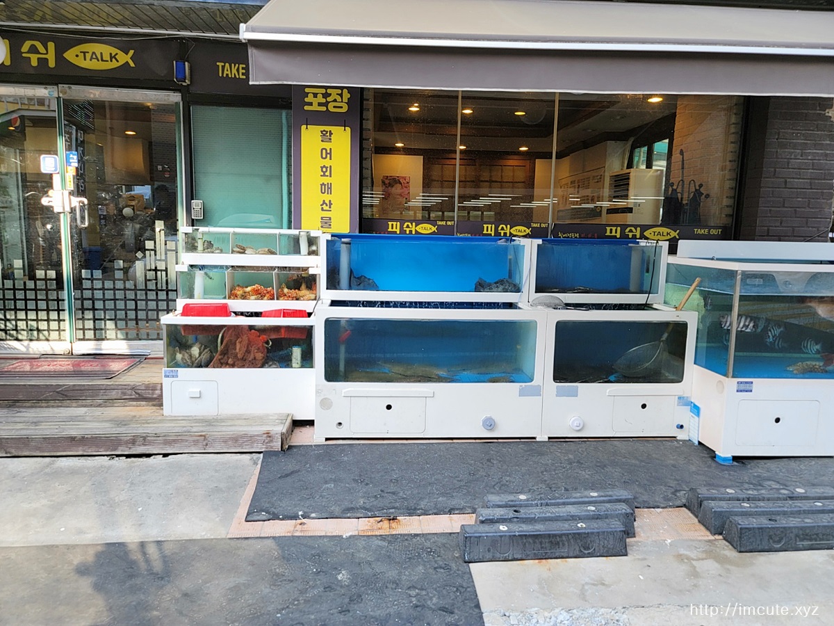 바깥에는 활어가 싱싱하게 살아움직이고 있는데요