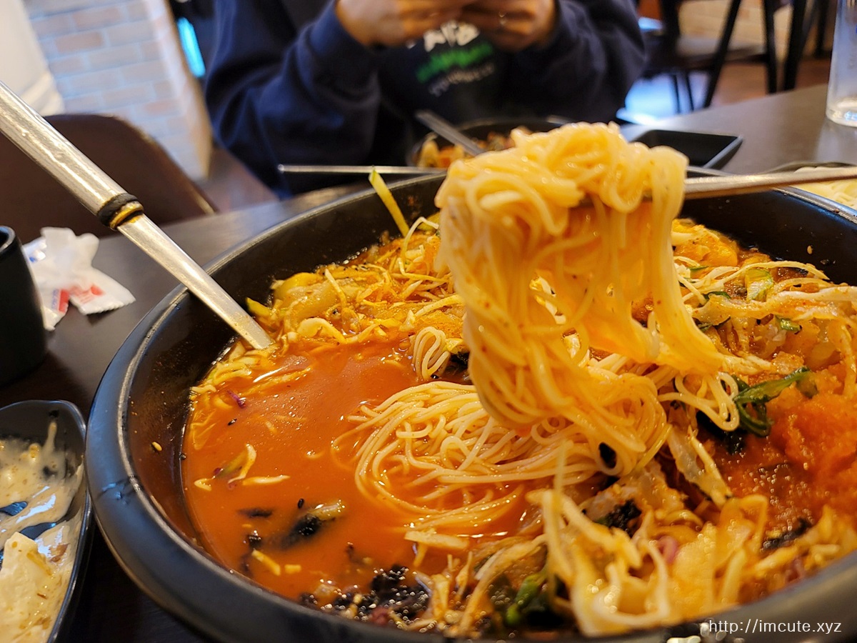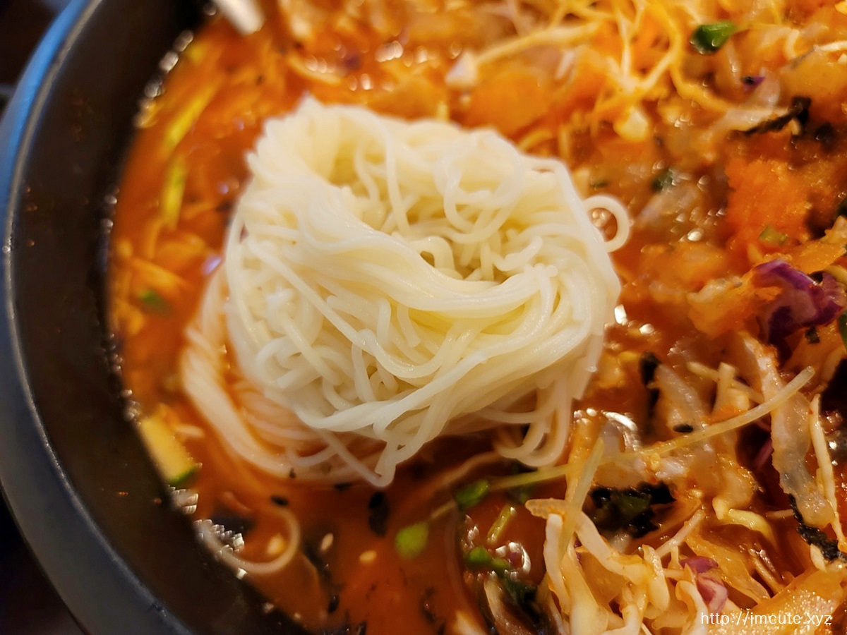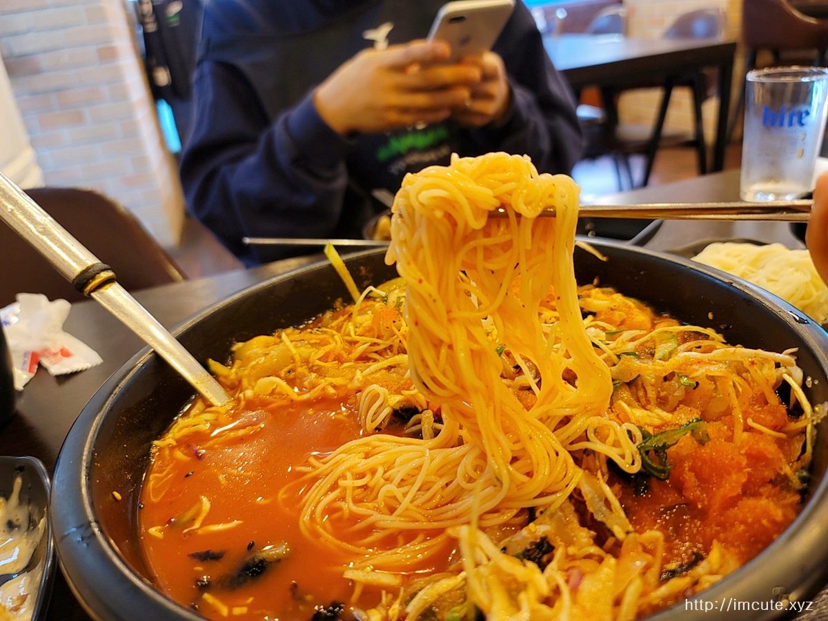잘 섞어주고 먼저 건더기를 좀 탐해주다가 나중에 소면을 넣어주도록 합시다
