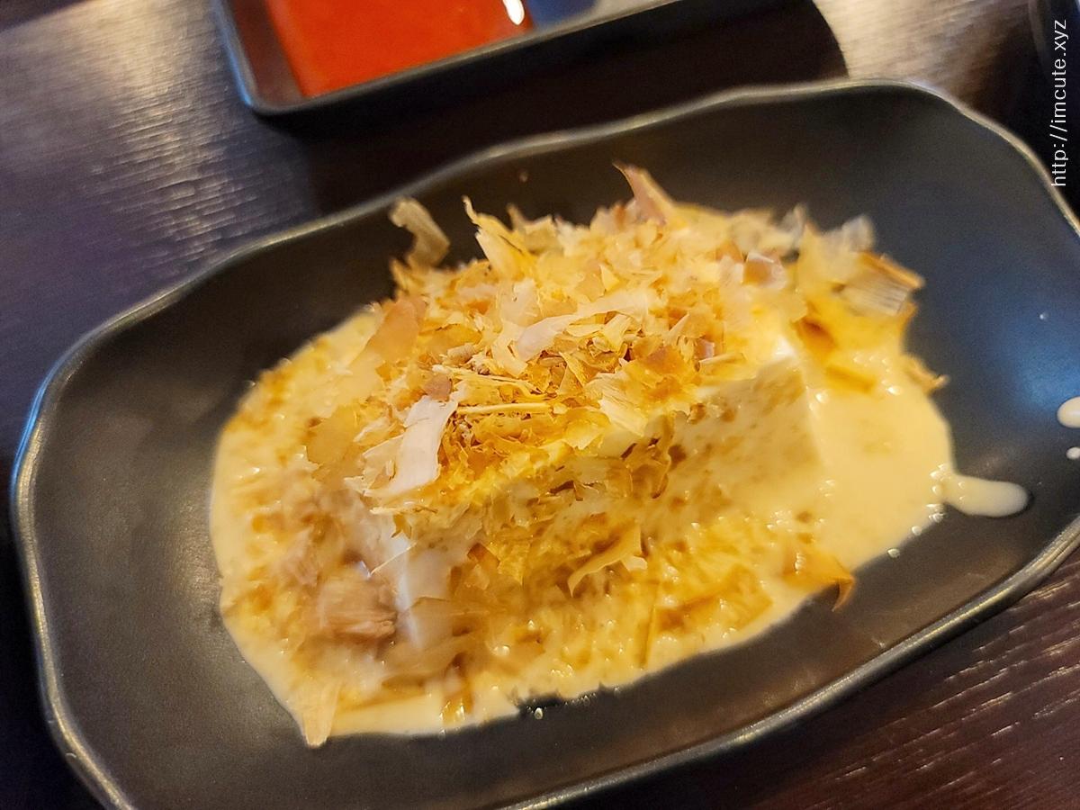 두부에 가쓰오부시가 뿌려져있어요.
