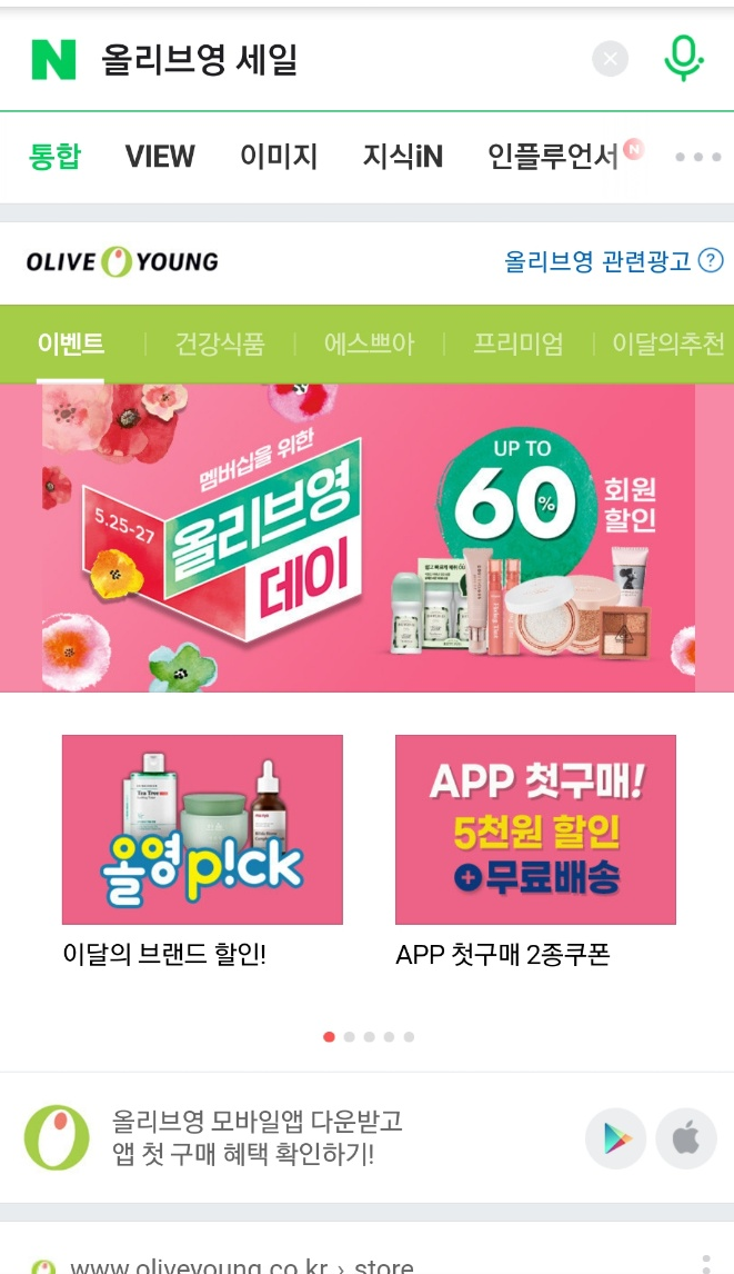검색창에 올리브영 세일을 검색하면 이달의 브랜드 할인이라든가
