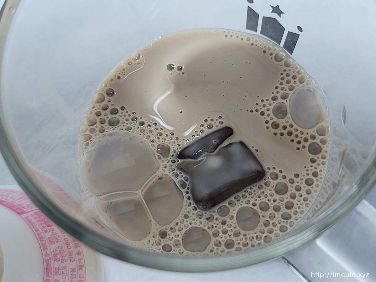 저는 시원하게 먹는것을 좋아하므로, 얼음을 잔뜩 넣어서 단지우유 밀크티맛을 탐해볼거에요.