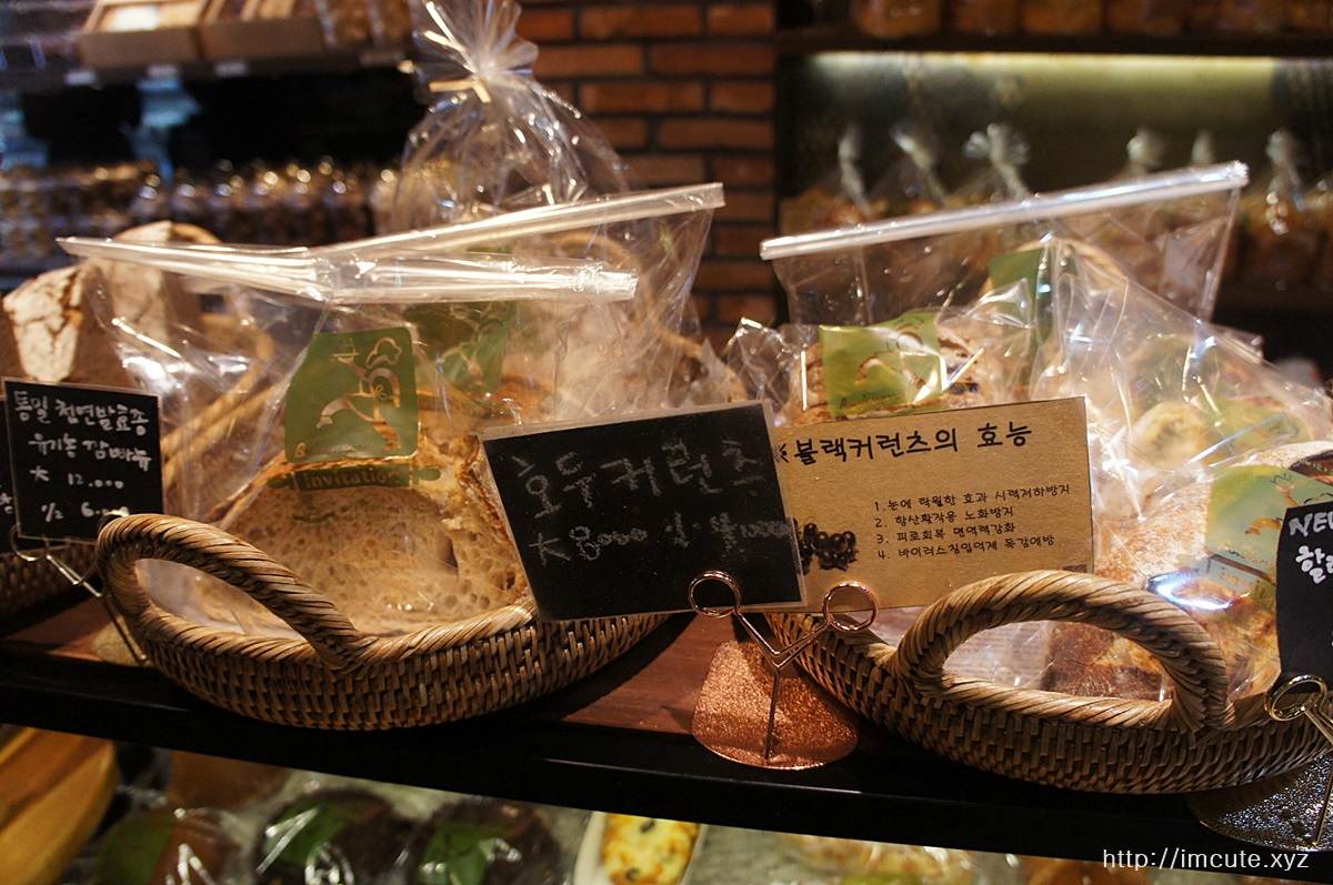 커런츠 빵입니다. 호두커런츠는 대짜가 8000원이더라고요. 블랙커런츠라는 것이 들어있나 본데 효능이 써있었고요. 뒤에는 유기농 으로 만들어졌다는 깜빠뉴가 있어요.