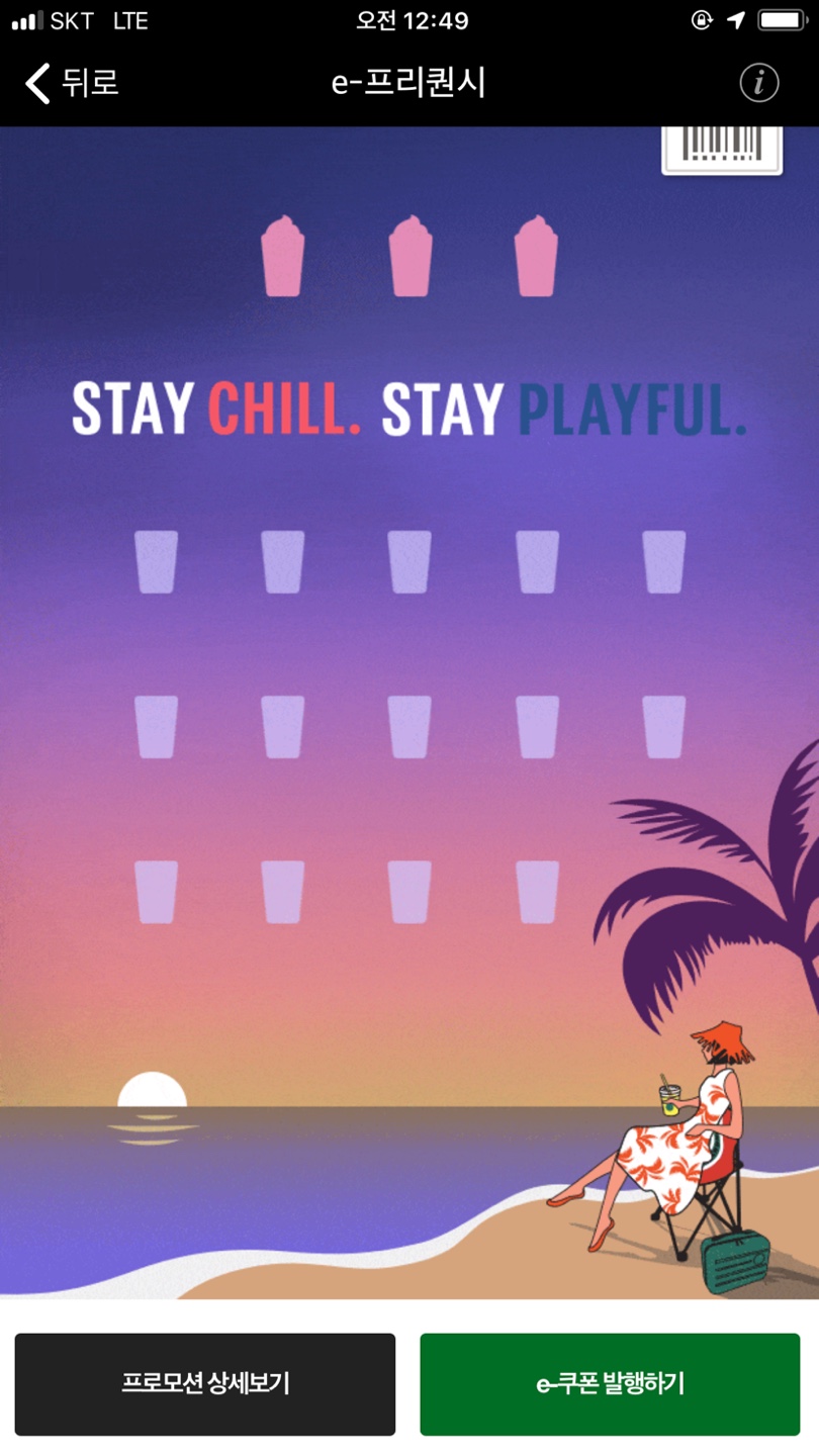 프리퀀시 벽지로는 서핑을 하는 싱그러운 그림이 엿보인다. 파도그림과 함께 아직 5월이지만 벌써부터 스타벅스와 함께할 피서가 그려지는 부분이다. 그러니 이런 이벤트를 하고 있는게 아닌가 싶은데! 역시 스타벅스 코리아는 세계에서도 그 마케팅 솜씨를 배우고 있을 만큼, 소비자의 니즈를 참 유효적절히 잘 파악하고 있다.
