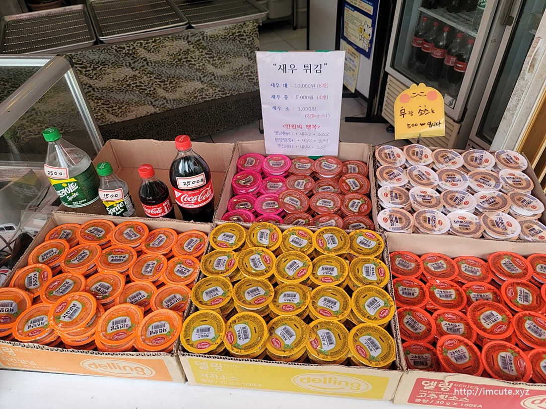 치킨무랑 소스도 팔고있어요. 싸죠?