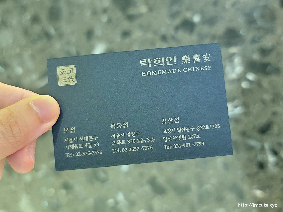 락희안 명함 첨부합니다. 본점은 서대문구 가재울로에 있고요 목동점, 일산점도 있네요.