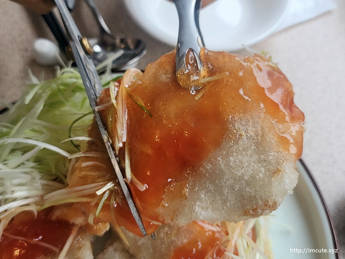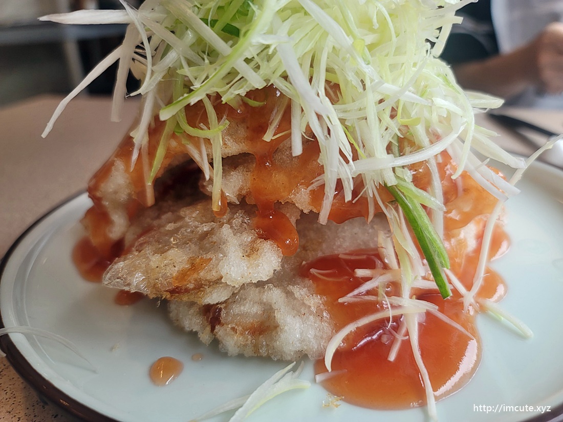 야들야들한 튀김이 인상적이죠. 한국에서 자주 먹을 수 있는 찹쌀 탕수육과 비슷한 현지음식이랍니다. 마라탕집에서 자주 먹는것인데..