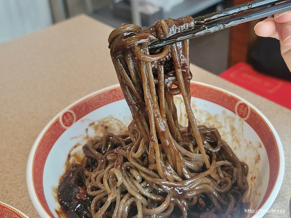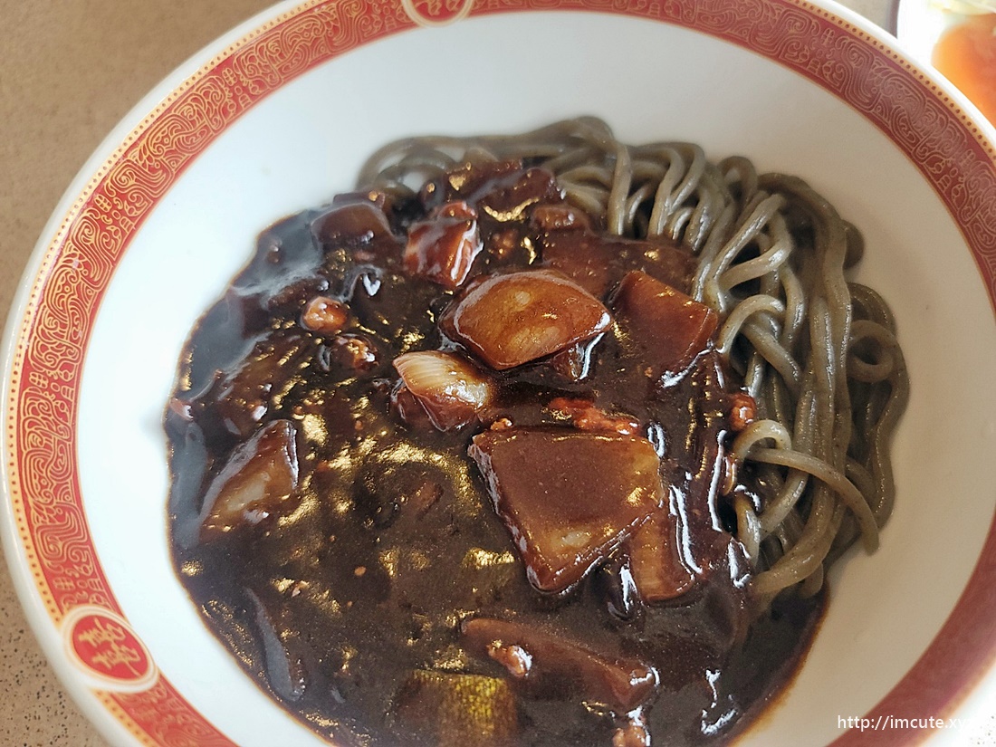자가제면의 참맛! 면 색깔이 독특하답니다. 확실히 짜장면 맛이 다르네요~ 왜 일산 차병원 맛집인지 알겠습니다... 그릇 한가득 올라와있는 짜장면은 면발도, 맛도 굿이었어요. 살짝 덜 자극적이면서 건강식같은 짜장면 맛이라 소스까지 다 흡입하는것이 가능합니다. 그렇게 달지 않거든요.