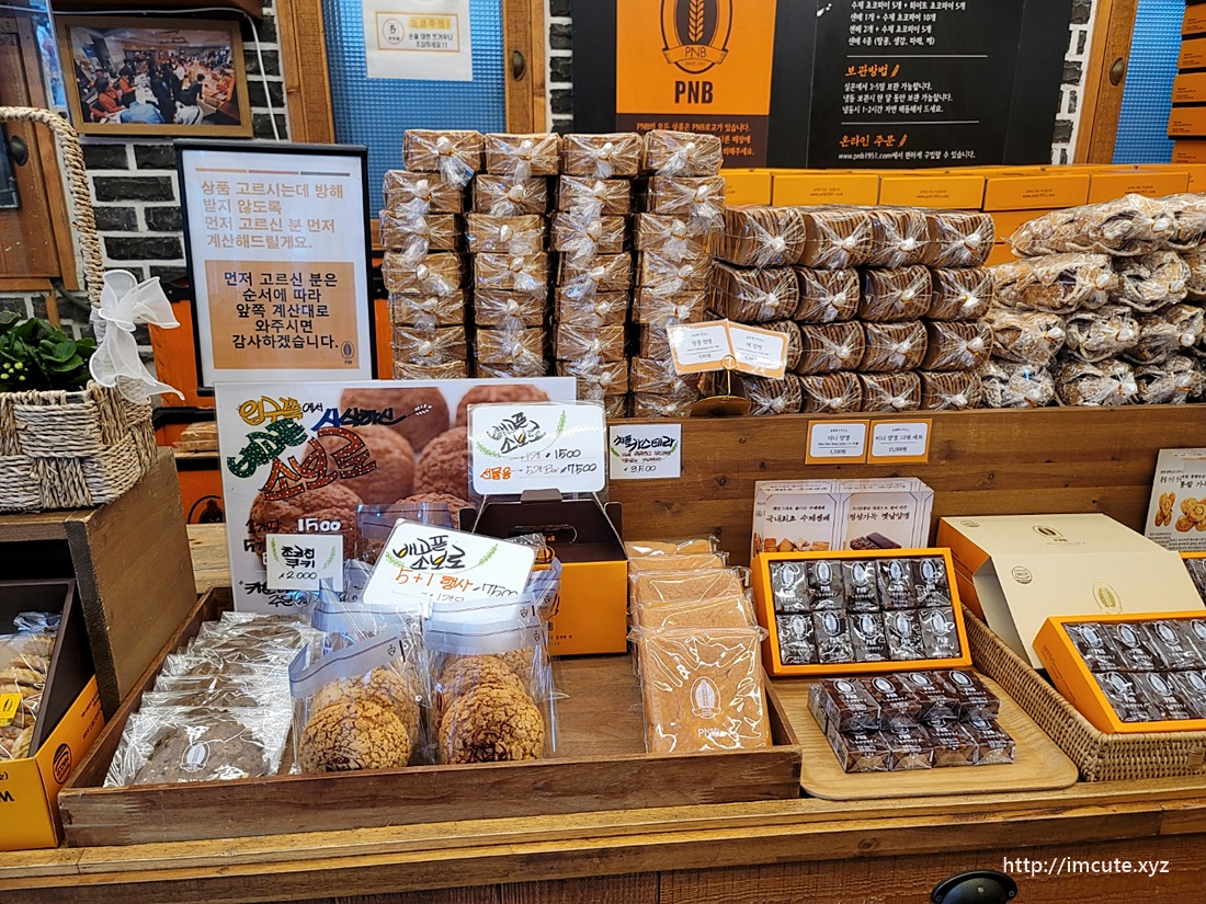 저는 수제 초코파이빵이랑 PNB 화이트 초코파이를 샀는데 덤으로 센베를 하나씩 주셨어요