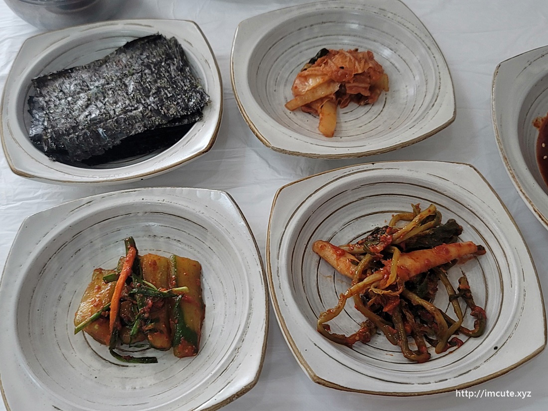 김치와 오이지, 김위주로 깔끔하게 반찬이 나오더라고요
