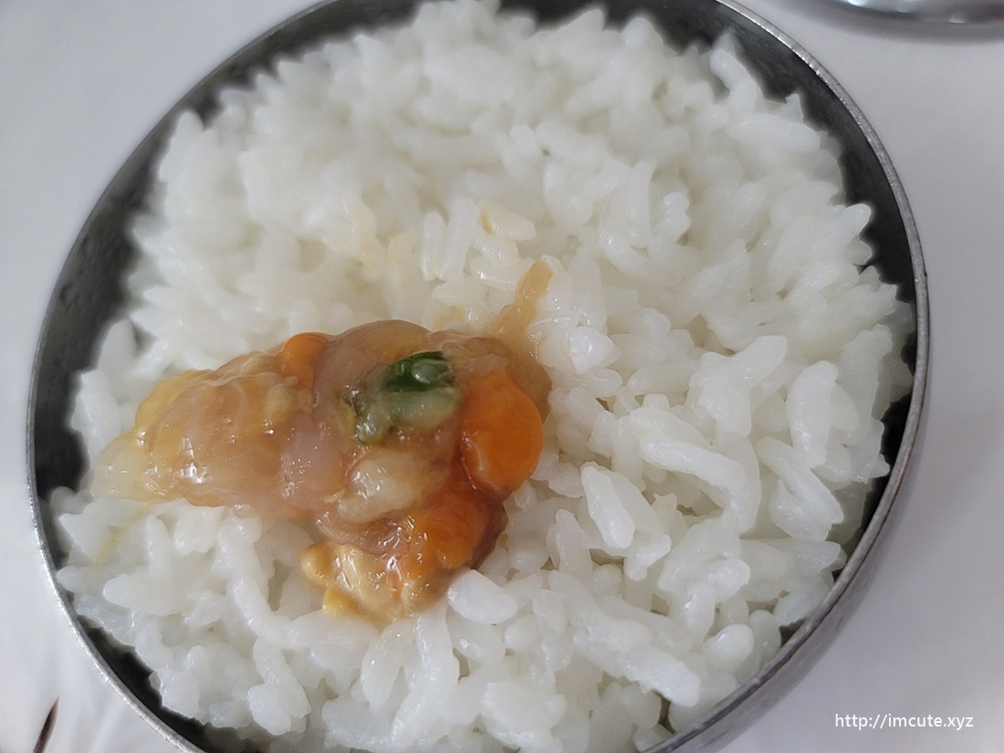 밥위에 바로 짜 보기~~~ 아 알배기 부분 정말 꼬소해요