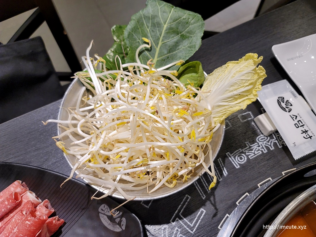 숙주와 청경채, 배추를 떠왔고요 사이드 디쉬로 샐러드도~ 이곳은 채소가 많아서 좋습니다