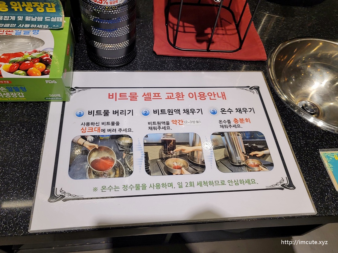 비트물 셀프교환은 비트물을 싱크대에 버리고 원액을 살짝 채운우 혼수를 채우는 것이라 합니다.