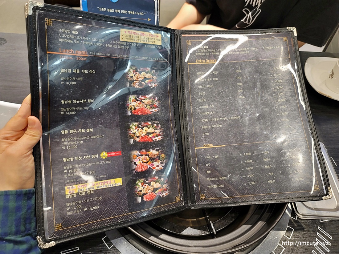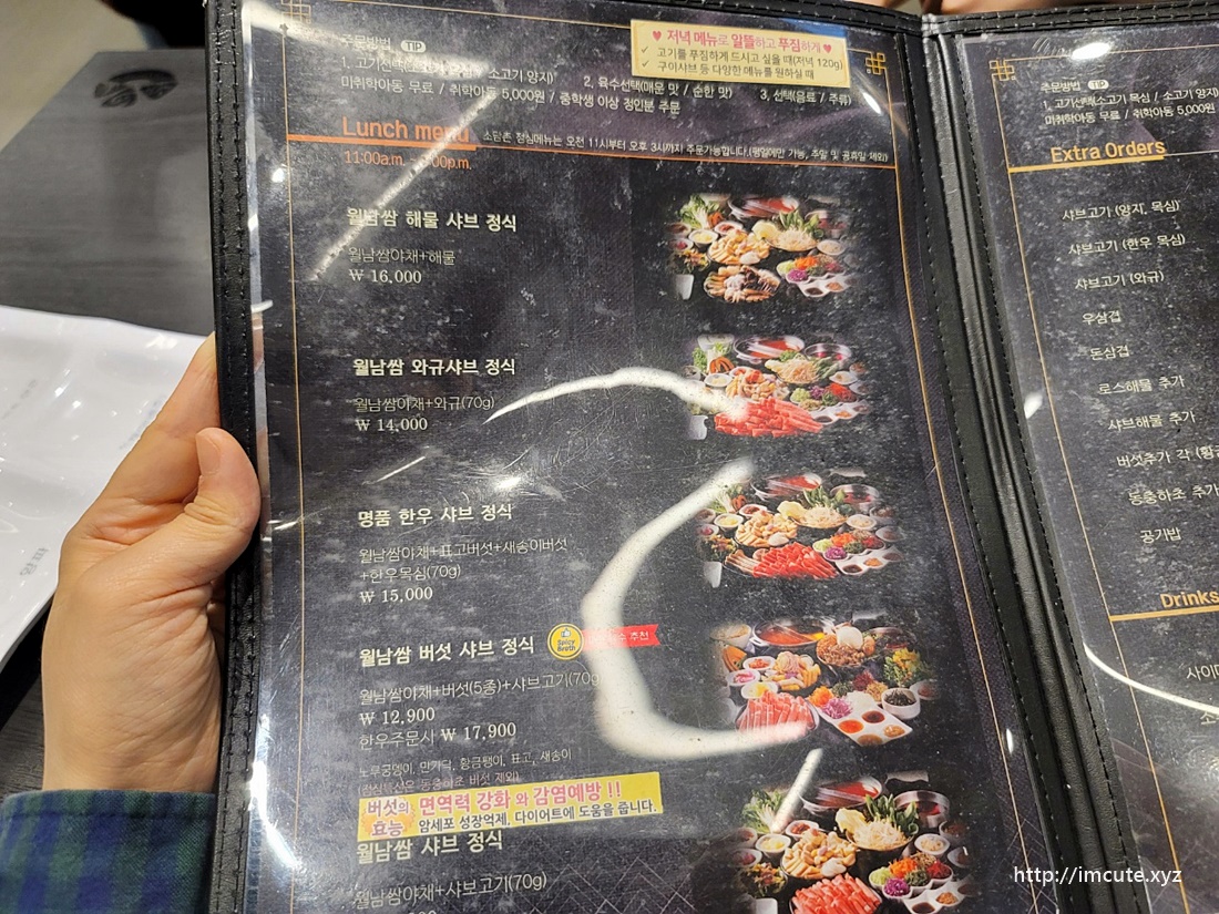 명품한우 샤브정식 15000원, 월남쌈 버섯 샤브 정식 12900원이네요~