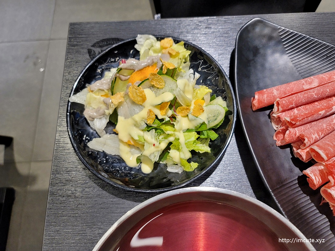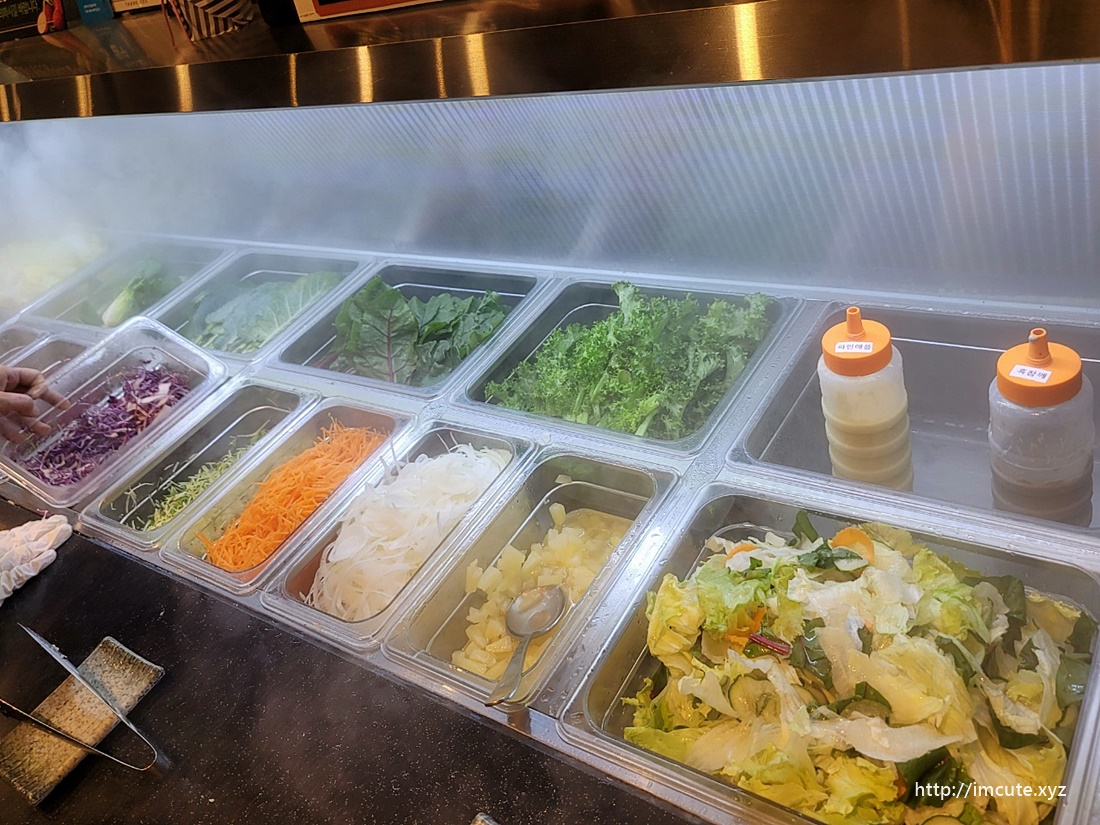 숙주와 청경채, 배추를 떠왔고요 사이드 디쉬로 샐러드도~ 이곳은 채소가 많아서 좋습니다