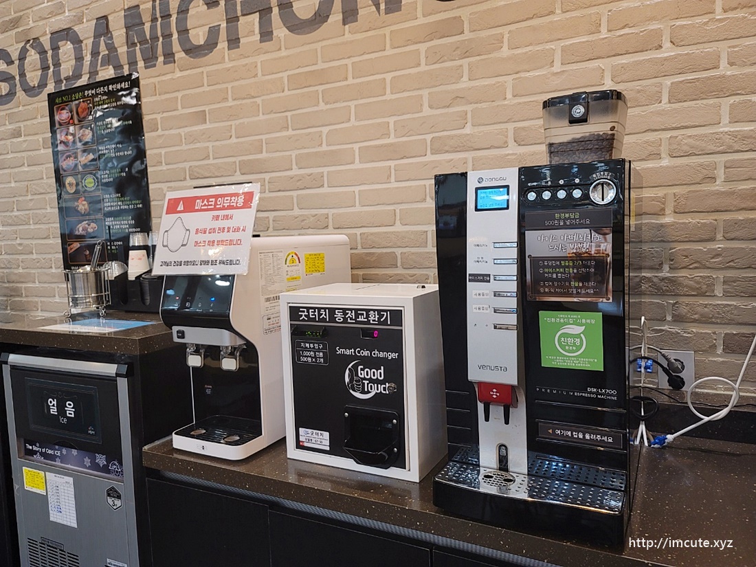 깔끔하고 넓은 외관이 인상적이며 안에는 커피를 먹을수 있는 공간이 따로 마련되어 있습니다.
