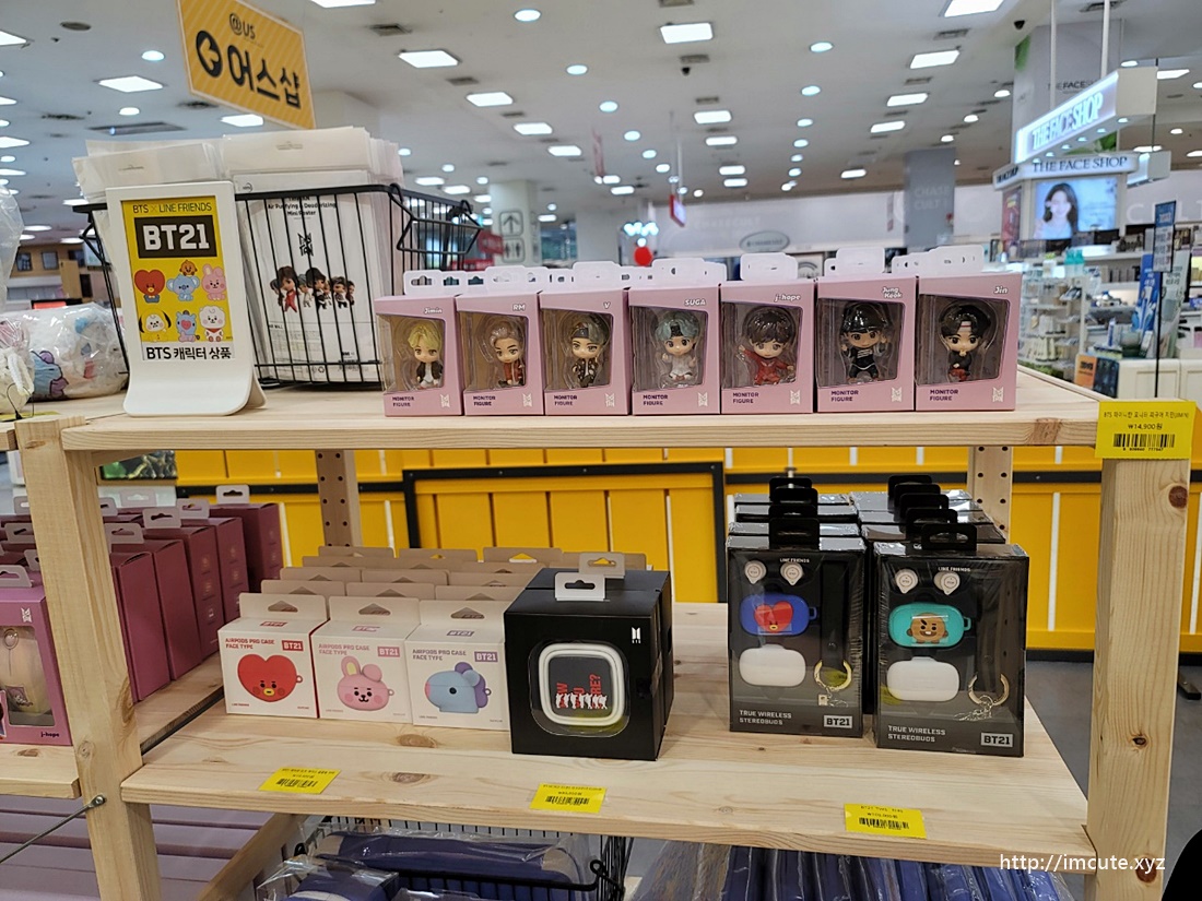 롯데마트에서 방탄관련 물품과 피규어, 에어팟 케이스, 핸드폰 케이스 등 여러 가지 제품을 다 만날 수 있다니!