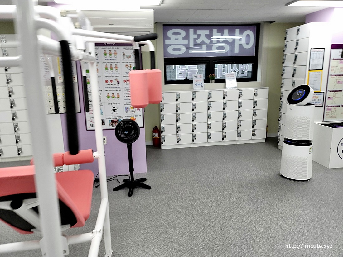 뒤에는 락커룸이고요 공기청정기가 안에 몇대가 있더라구요. 쾌적~ 그리고 사람들 다 발열체크 하고 항상 소독하는거 같더라구요...