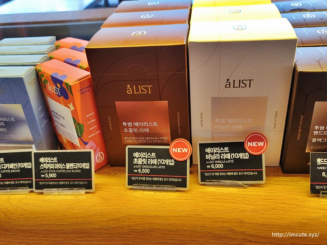 또한 에이리스트 초콜릿 라떼 10개입에 6500원, 에이리스트 바닐라 라떼 10개입에 6000원이며 신메뉴라고 하네요.