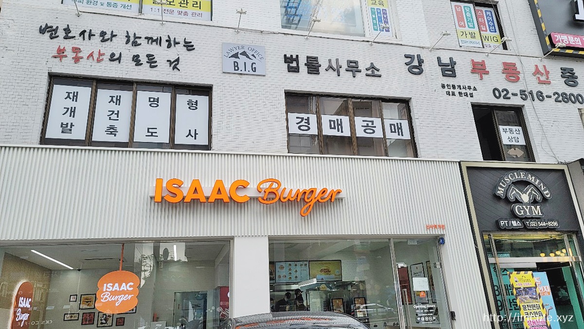 신사역 3번 출구에서 조금만 나오시면 이삭 버거가 있습니다. 위치는 대략 이렇고요 역에서 나와서 그냥 걷기만 하면 되니 찾는 것은 어렵지 않습니다.
