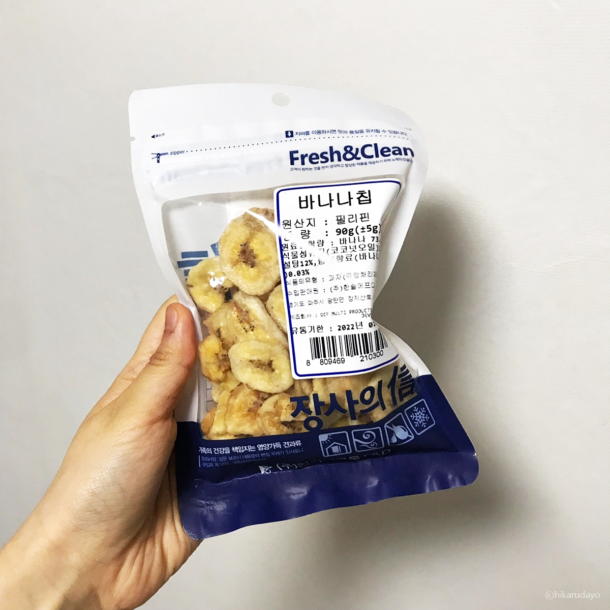 아주 귀엽죠?? 크기가 작습니다. 가격은 단돈 천원이더라고요. 근데, 은근 지퍼백 포장까지 되어 있어서 매력이 넘치는 아이였습니다(...) 요즘에는 바나나칩 먹으면 대변이 잘 나오더라고요. 오래 앉아있는 터라 이래저래 이런거 신경써서 먹어 주고 있습니다. 옛날에는 이런거 잘 안먹었는데, 그리고 지퍼백은 저의경우에는 이거 그냥 앉은자리에서 다 먹습니다(...)