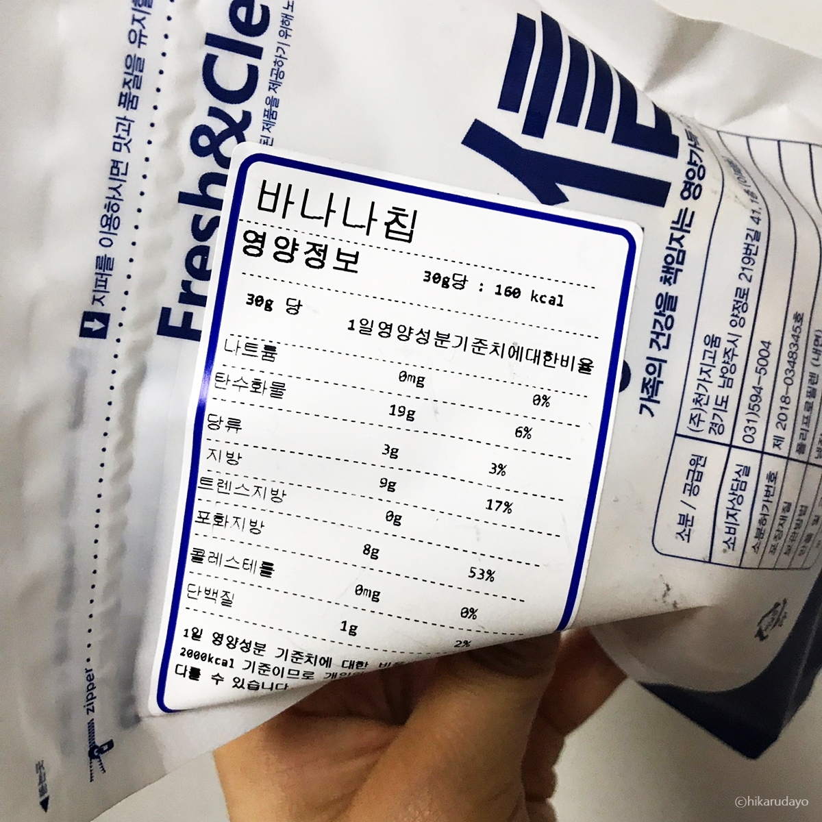 필리핀 바나나칩 영양소 분석도 해줘야겠지요? 30g당 160칼로리인데요, 90g이라니까 3배를 하면 이 제품의 칼로리가 나온답니다. 그래도 바나나가 원숭이 밥이잖아요, 원래 칼로리가 좀 높은 과실인데도 불구하고 이정도면 그렇게 열량이 높은건 아닌거 같네요. 맘 편히 즐겨도 됩니다.