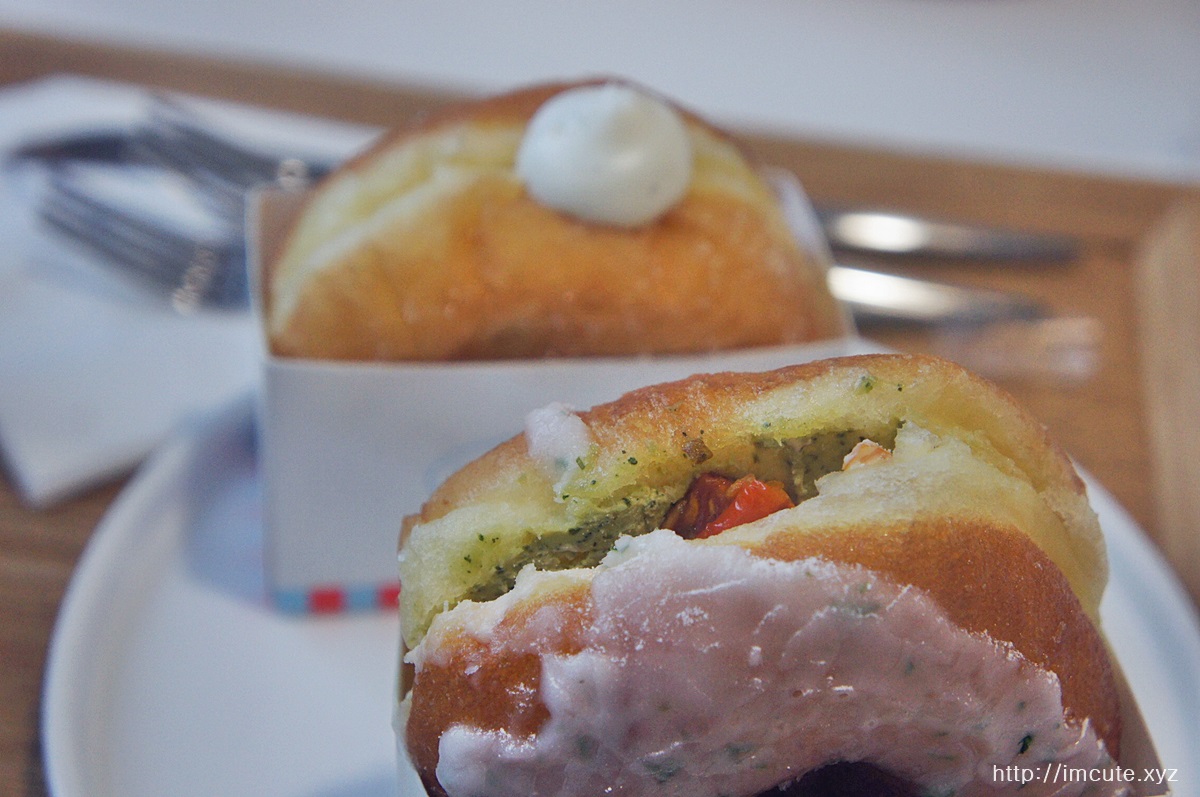 토마토에 바질이 들어가 있는 것이었는데요 겉에는 또 설탕 코팅이 되어있어서 넘나 맛나요. 보들보들 도넛! 입안에서 살살 녹고 커피도 한 모금 호로록해주면 뒷마무리가 미쳤어요!