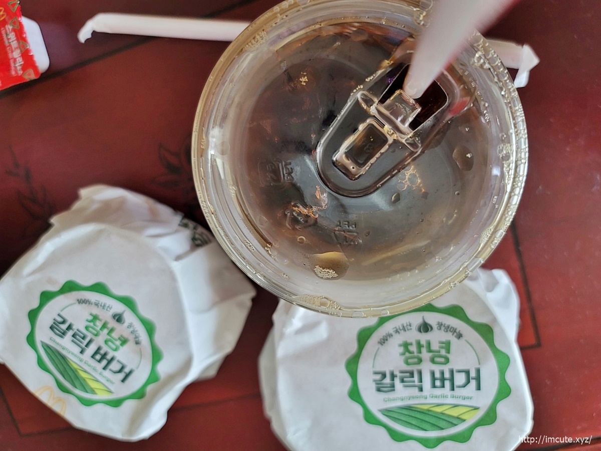 창녕갈릭버거 단품 2개와, 아이스 아메리카노를 주문했습니다. 이렇게 먹으면 웰빙이 될까요?