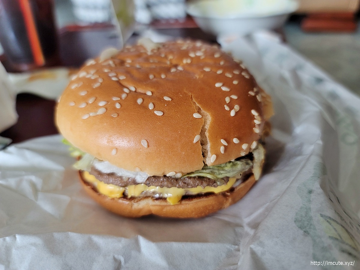 이렇게 보여드리니 잘 모르시겠지만 크기도 일반 햄버거보다 꽤나 크고도 웅장했다고나 할까요.
