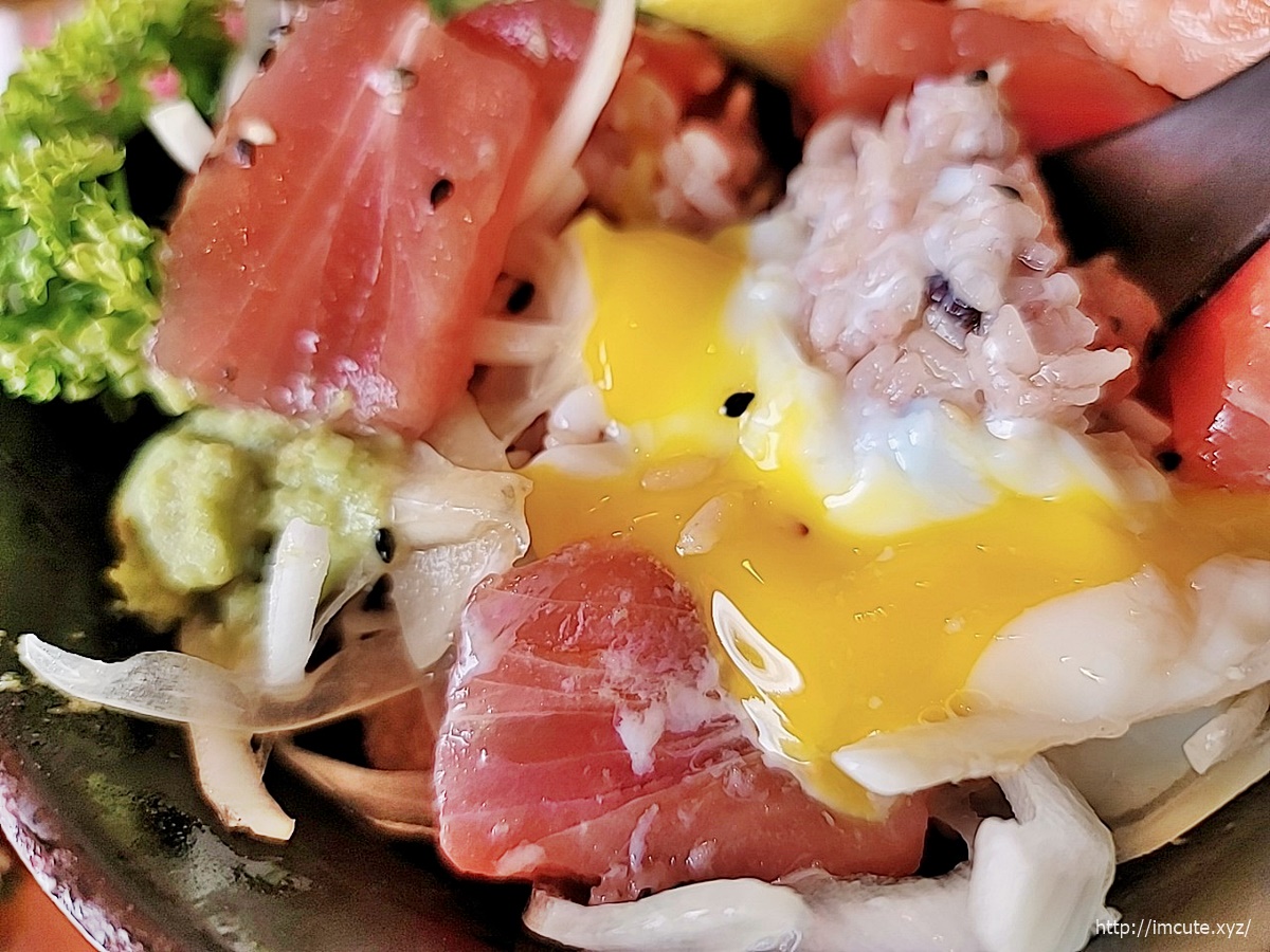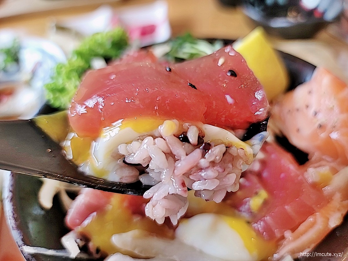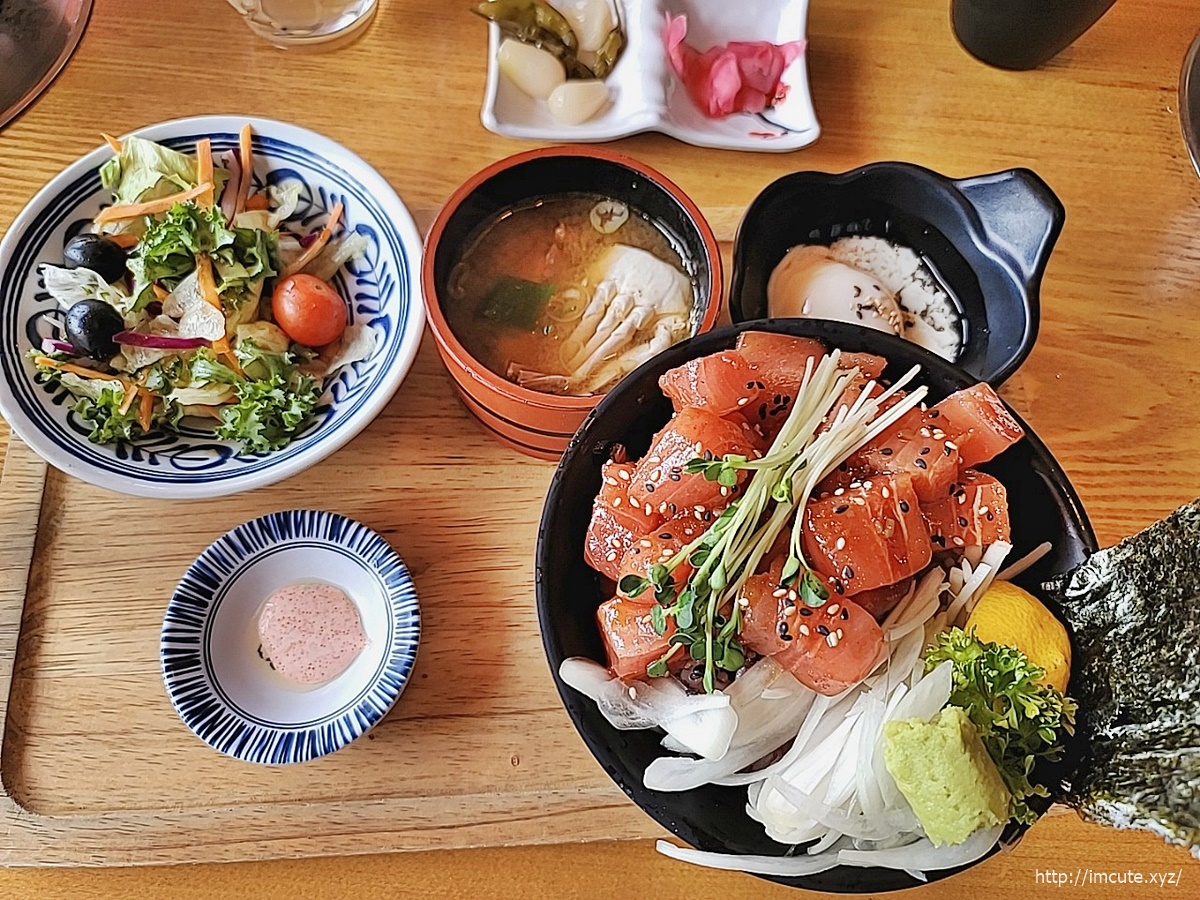반숙 계란은 비린내가 일단 없었고요 참치나 연어와 조합이 완벽하더라고요. 이래서 홍대 연어덮밥 맛집으로 이곳을 꼽나봐요. 제가 연어덮밥 맛집이라고 하는 데 가봤을 때는 너무 크게 썰어줘서 연어가 느끼하거나 혹은 연어가 너무 얇아서 양이 부족한 곳도 있었는데 이 곳은 양적으로 너무 만족하는데 맛도 있어서 끝내줬어요.