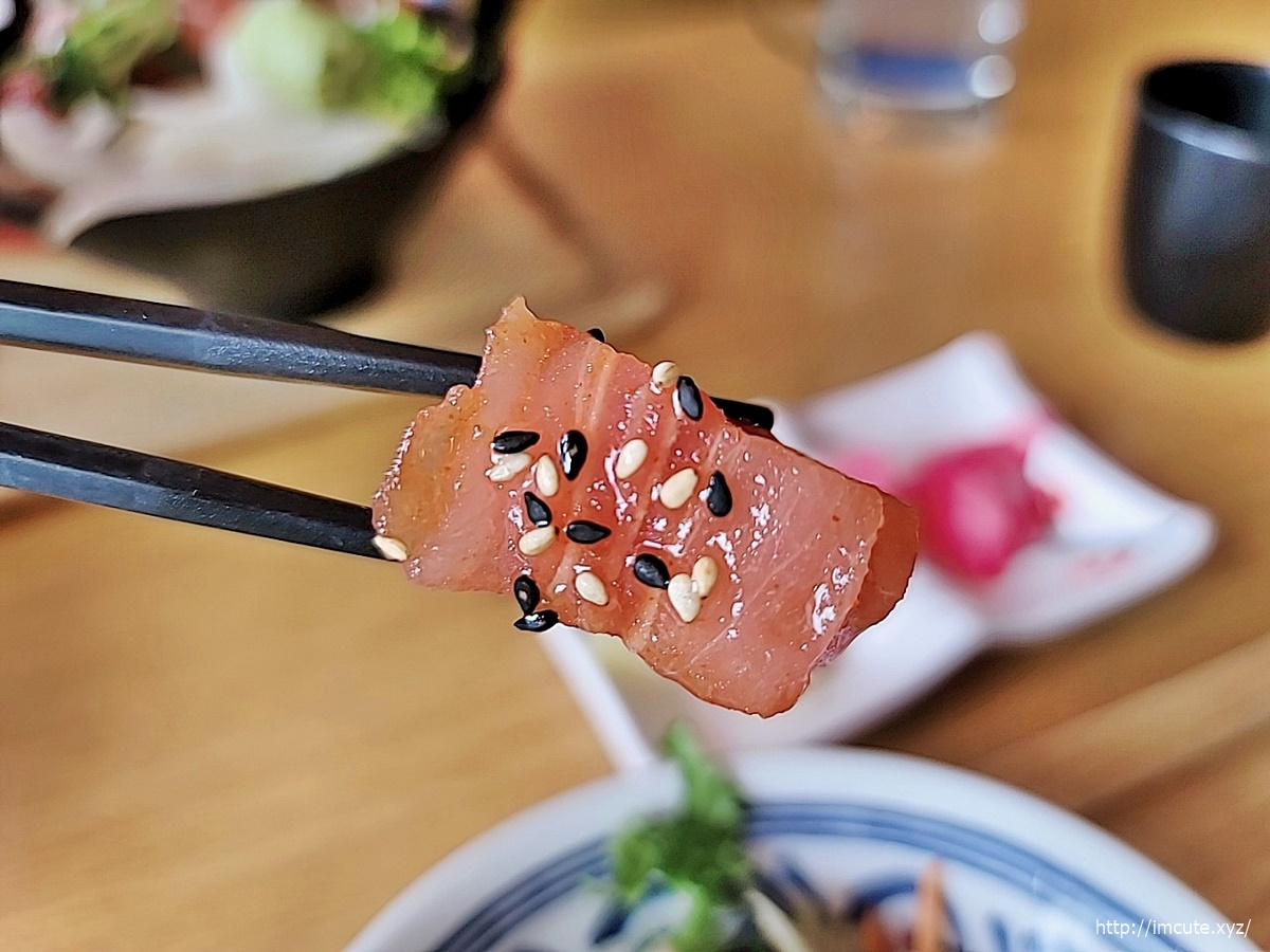 연어랑 참치가 둘 다 있어서 어떤거 먹을까~ 고민 안 해도 됩니다. 마치 짬짜면처럼 말이죠.
