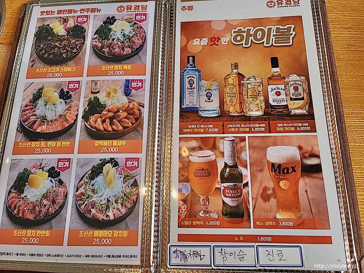 이 뿐만 아니라 안주메뉴도 엄청 다양했는데요 참치 반반회라든가 매콤마요 참치회, 초신선 소고기 스테이크, 그리고 반반메뉴에 갈릭버터 통새우 메뉴까지 있더라고요. 술이랑 정말 잘 어울릴거 같죠?